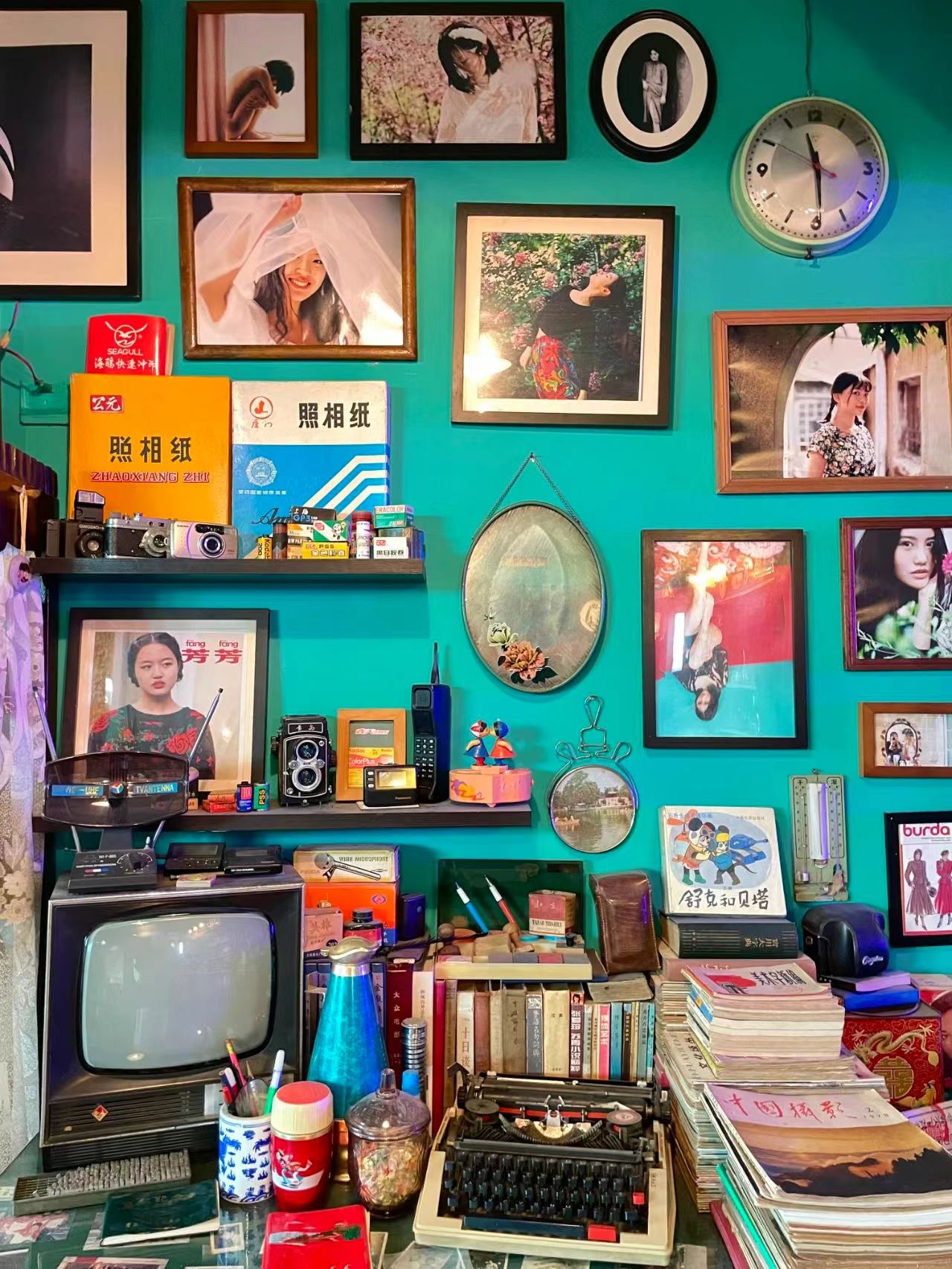 旧家具、复古挂钟、旧画报