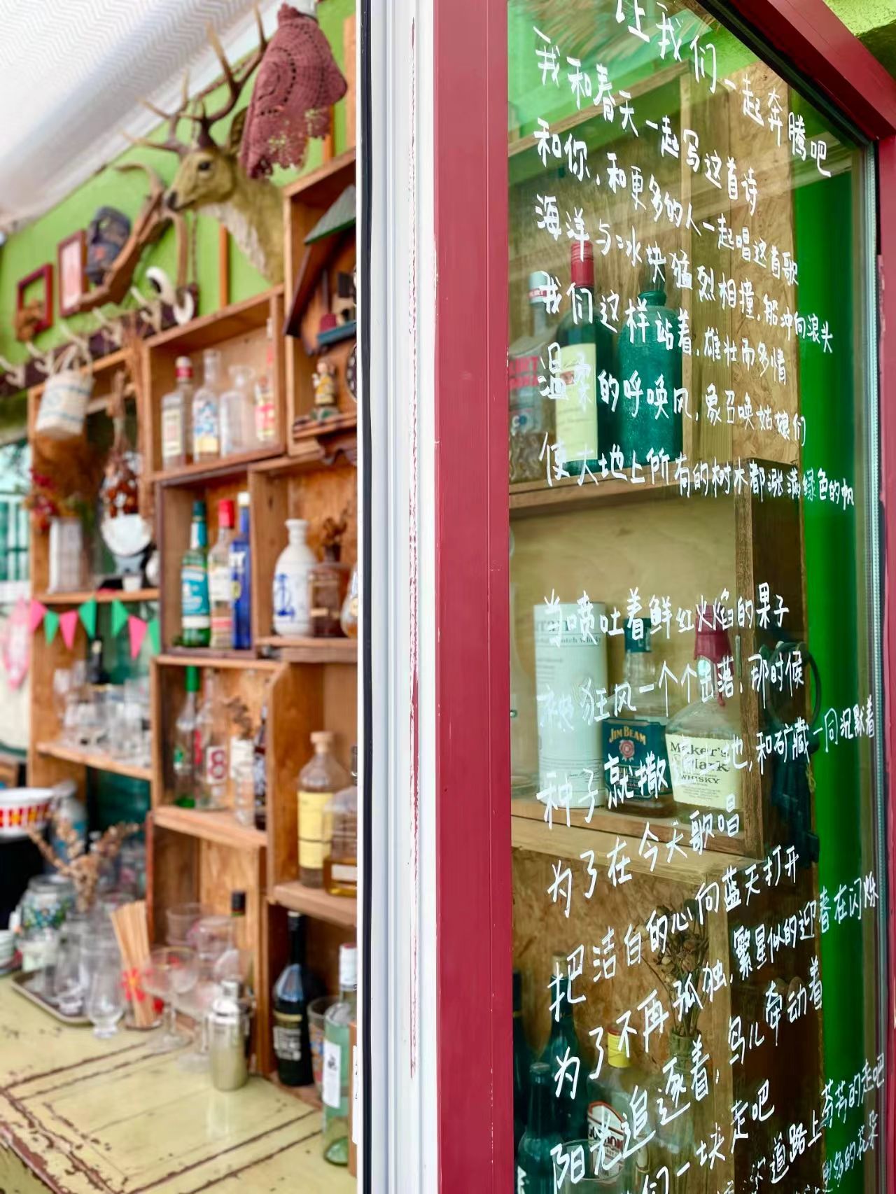 写在门上的诗、肆意绽放的花草