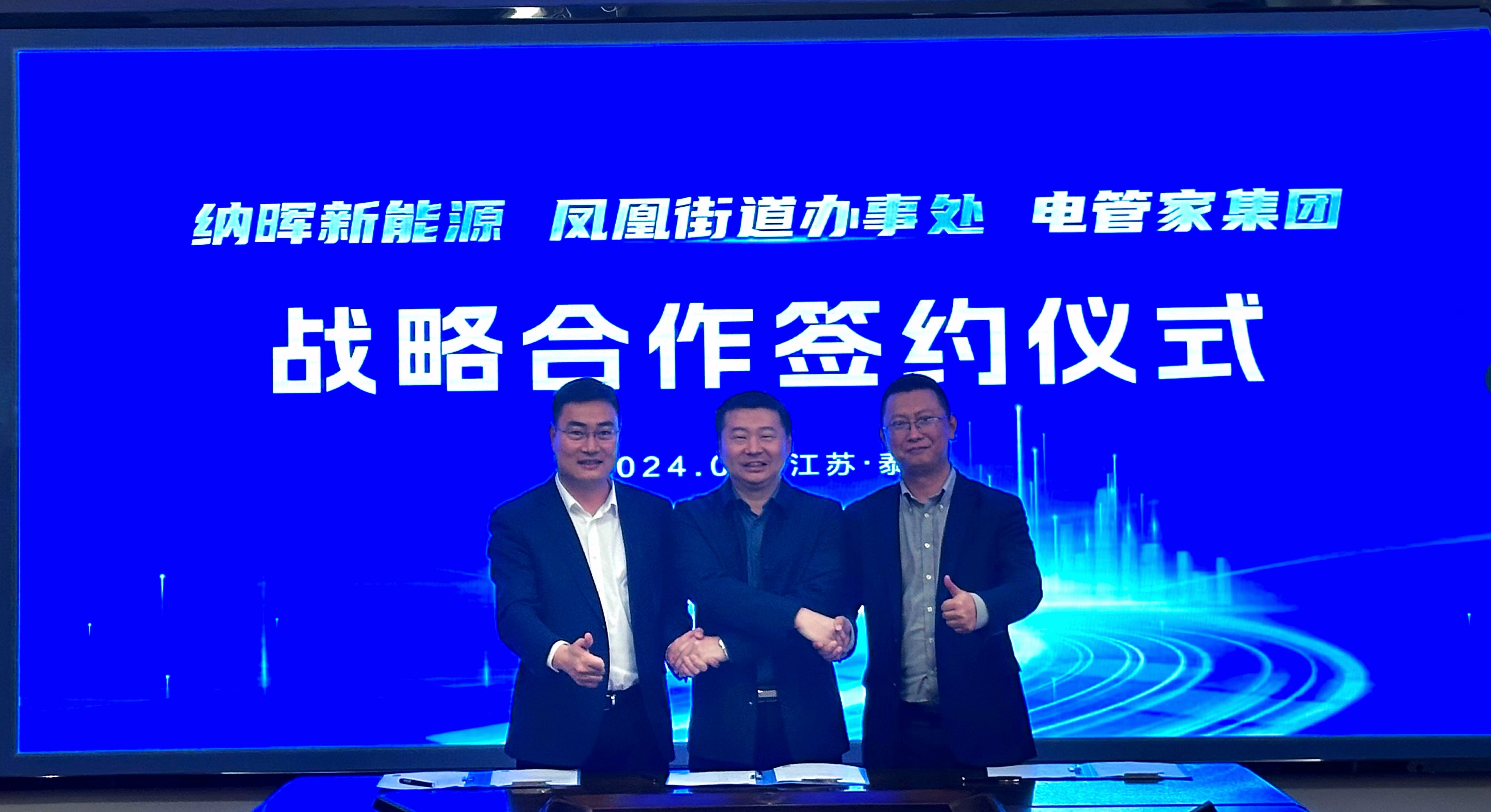 践行“双碳”战略,促进绿色高质量发展。4月25日,纳晖新能源与泰州凤凰街道办事处、电管家集团签订“光储充”一体化项目战略合作协议。各方将共同打造成泰州市首个政府大院样板项目,并推进泰州范围内光储充一体化新能源场景建设。