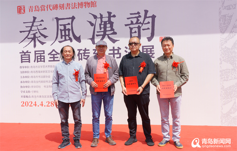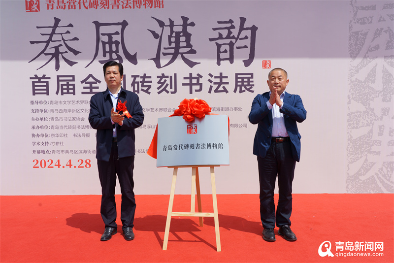 青岛新闻网4月28日讯(记者 刘文超)28日10时,由青岛市文学艺术界联合会作为指导单位,青岛西海岸新区文化和旅游局作为支持单位,青岛市书法家协会、青岛当代中国书法院联合主办,青岛当代砖刻书法博物馆、青岛工人美术馆、青岛浮山窑陶瓷艺术博物馆、青岛青西文化旅游有限公司联合承办,京华印社、书法导报、陈介祺研究会联合协办,寸耕社提供学术支持的“秦风汉韵”首届全国砖刻书法展暨青岛当代砖刻书法博物馆开馆仪式,在青岛西海岸新区青岛当代砖刻书法博物馆隆重开幕。