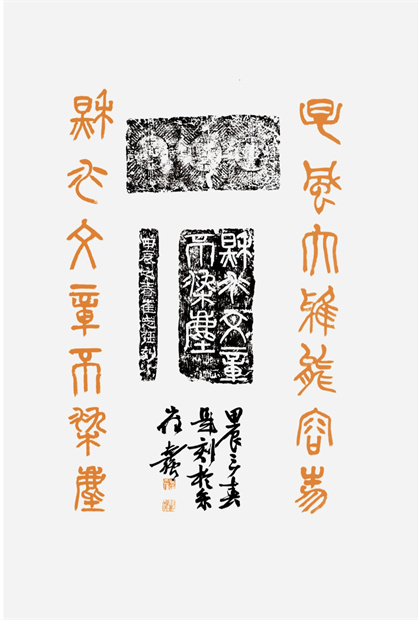 “秦风汉韵”首届全国砖刻书法展共展出特邀作品24件,入展作品79件,参展作品来自20个省市。此次展览在体现砖石材质特性方面做了很多探索性的尝试。形式、技法运用更加多样化,很多作品都巧妙地运用砖石的材质特点,使得整个展览融合浓浓的传统书法应有的气息和神韵,又融合了砖石材质与技艺之美,构筑了书法与砖石结合所产生的特有艺术语境。作品蕴含着金石气息和深厚的艺术内涵,展现了砖刻书法所独有的艺术魅力。