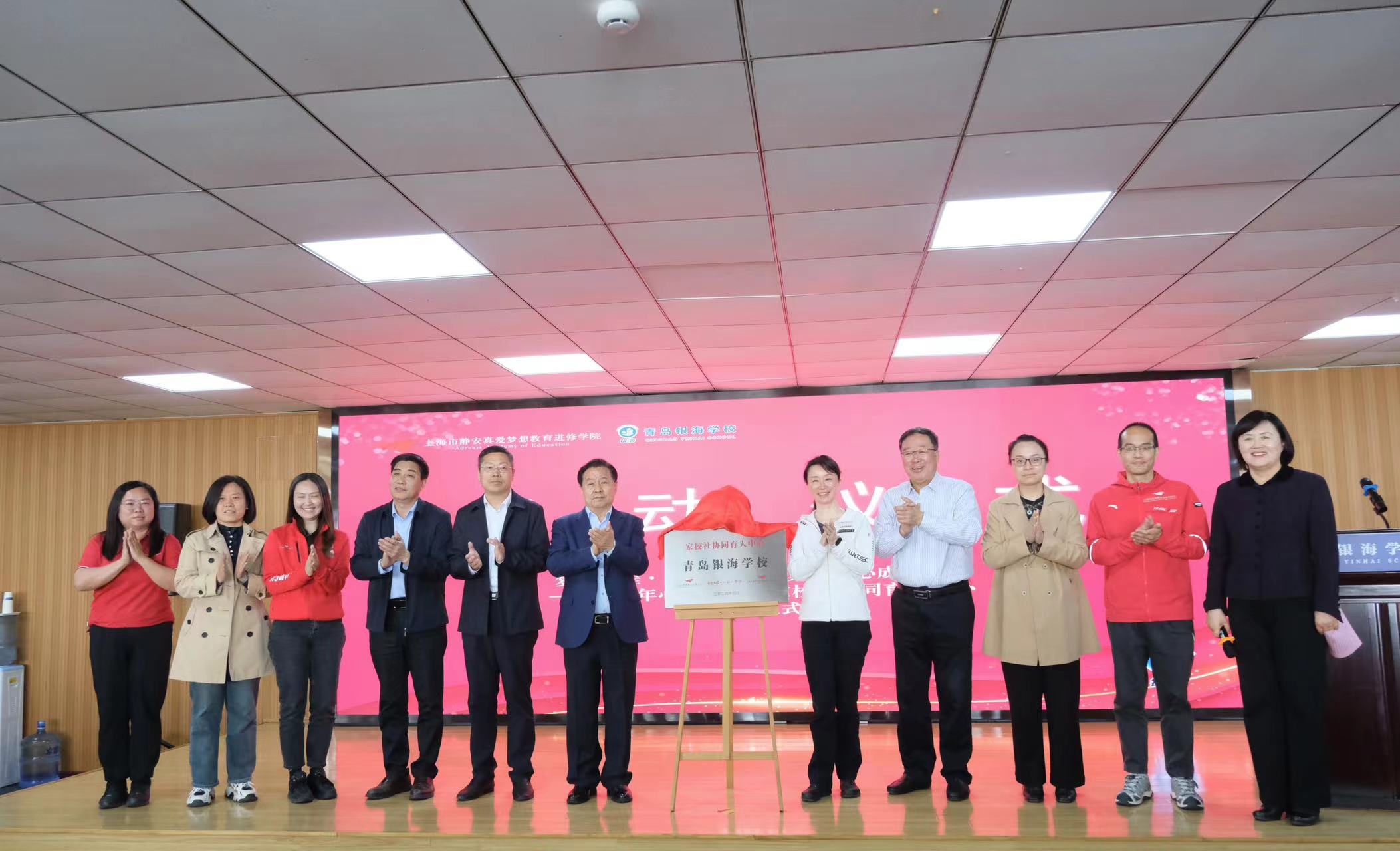 在市教育局、市教育学会、市教科院的见证下,潘江雪理事长、青岛银海集团党委书记、董事长辛华龙共同为银海学校的“青少年心理健康·家校社协同育人中心”揭牌,正式携手开启真爱慧心成长计划,培养身心健康,自信、从容有尊严的青少年。