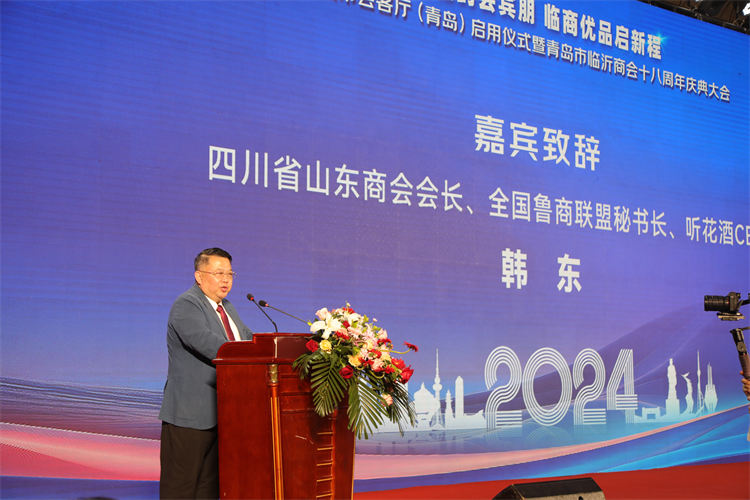 四川省山东商会会长、全国鲁商联盟秘书长、听花酒CE0韩东在致辞中表示:青岛市临沂商会是有理想、有温度、有情怀、有担当的商会,是全国众多临商中的一面旗帜。祝青岛市临沂商会风华正茂,前程似锦。
