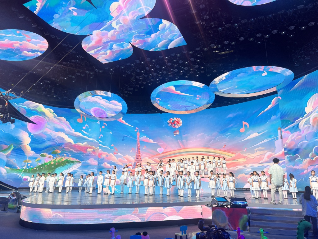 参与总台六一晚会演出,“快节奏”和“高标准”是不变的关键词。从5月21号中午一下火车,30名小演员就立刻投入紧张的排练中。在京期间,同学们每天至少要排练七八个小时,有时要到凌晨时分才能回到酒店休息。比排练强度更高的,是大家对登上央视六一舞台的热情。在总台导演老师的高标准严要求下,同学们不仅打磨出了精彩的节目,更积累了宝贵的经验。
