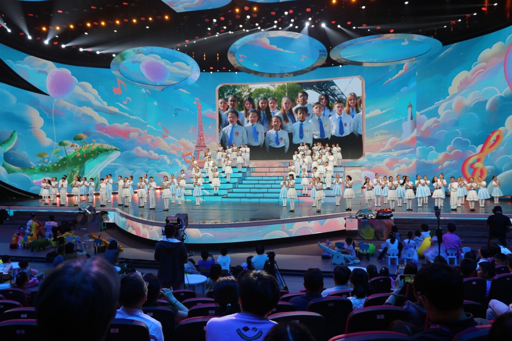 2024年是中法建交60周年。晚会特别编排的《中外少年云合唱》节目中,青岛广电小白帆艺术团和中央广播电视总台银河少年电视艺术团、中国音乐学院附中少年爱乐乐团一起,和来自法国的邦迪少年合唱团“云”同台,演唱了两首优秀歌曲,用歌声架起友谊桥梁。