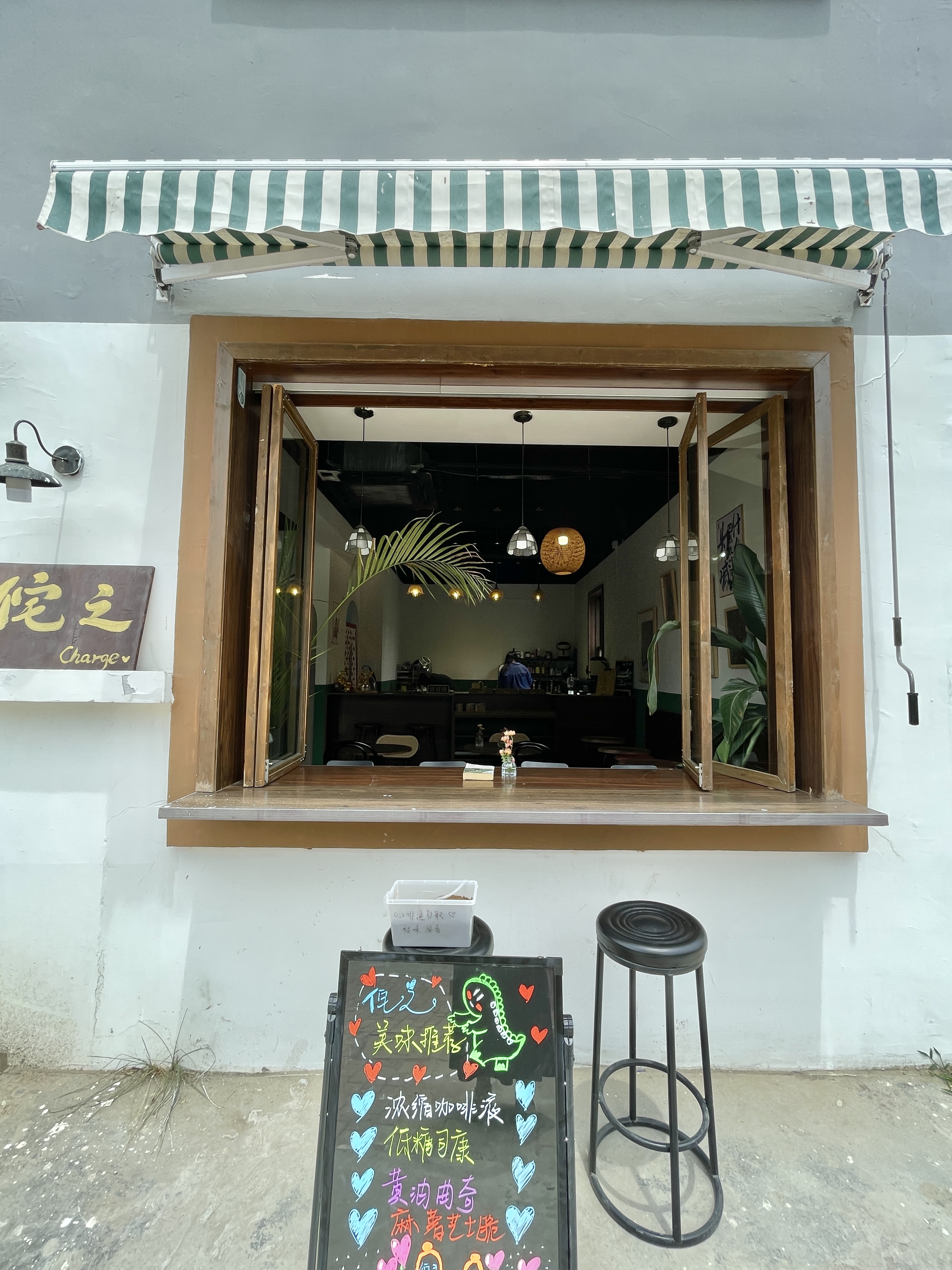 家人们,快看呀!李沧区新开了一家南法风情咖啡馆——Charge侘之,就在李村河河畔,闹中取静好惬意。