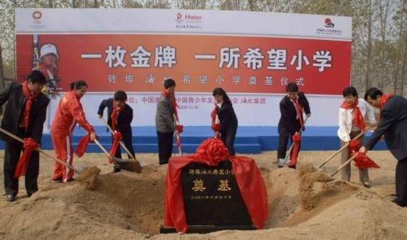 2008年北京奥运会期间,海尔启动了“一枚金牌一所希望小学”计划,当年中国队共获得51枚金牌,海尔当年援建了51所希望小学。如今,海尔已经累计援建400多所希望学校,是团中央希望工程中援建希望小学最多的企业。