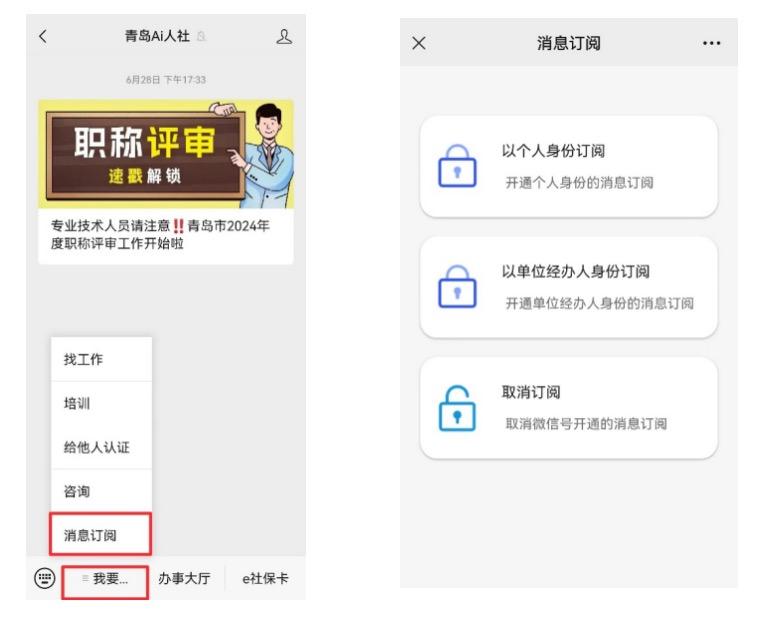 聚焦群众切身利益,青岛市人力资源和社会保障局从小切口、微服务入手,创新推出“社保相伴”业务消息提醒服务,根据参保人的年龄、参保状态、累计缴费年限等信息,通过大数据比对分析,将群众关心关注的社保权益信息,定制化、精准化推送给本人,更好地维护参保人的社会保险知情权和参与权。参保企业和个人登录“青岛Ai人社”微信公众号并关注后,点击左下角的“我要……”、点击“消息订阅”,选择订阅方式并验证后,即可享受“随身秘书”般的贴心提醒服务。