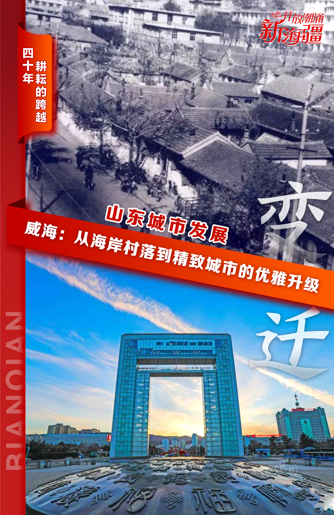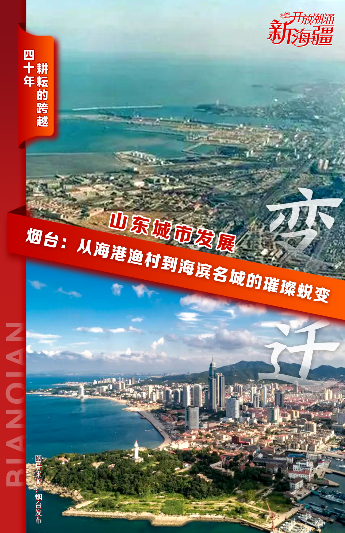 让我们一同走进这一组组海报,感受山东沿海开放城市四十年来的风雨兼程与辉煌成就,共同见证这片热土在新时代的浪潮中,如何继续扬帆远航,开创更加美好的未来。
