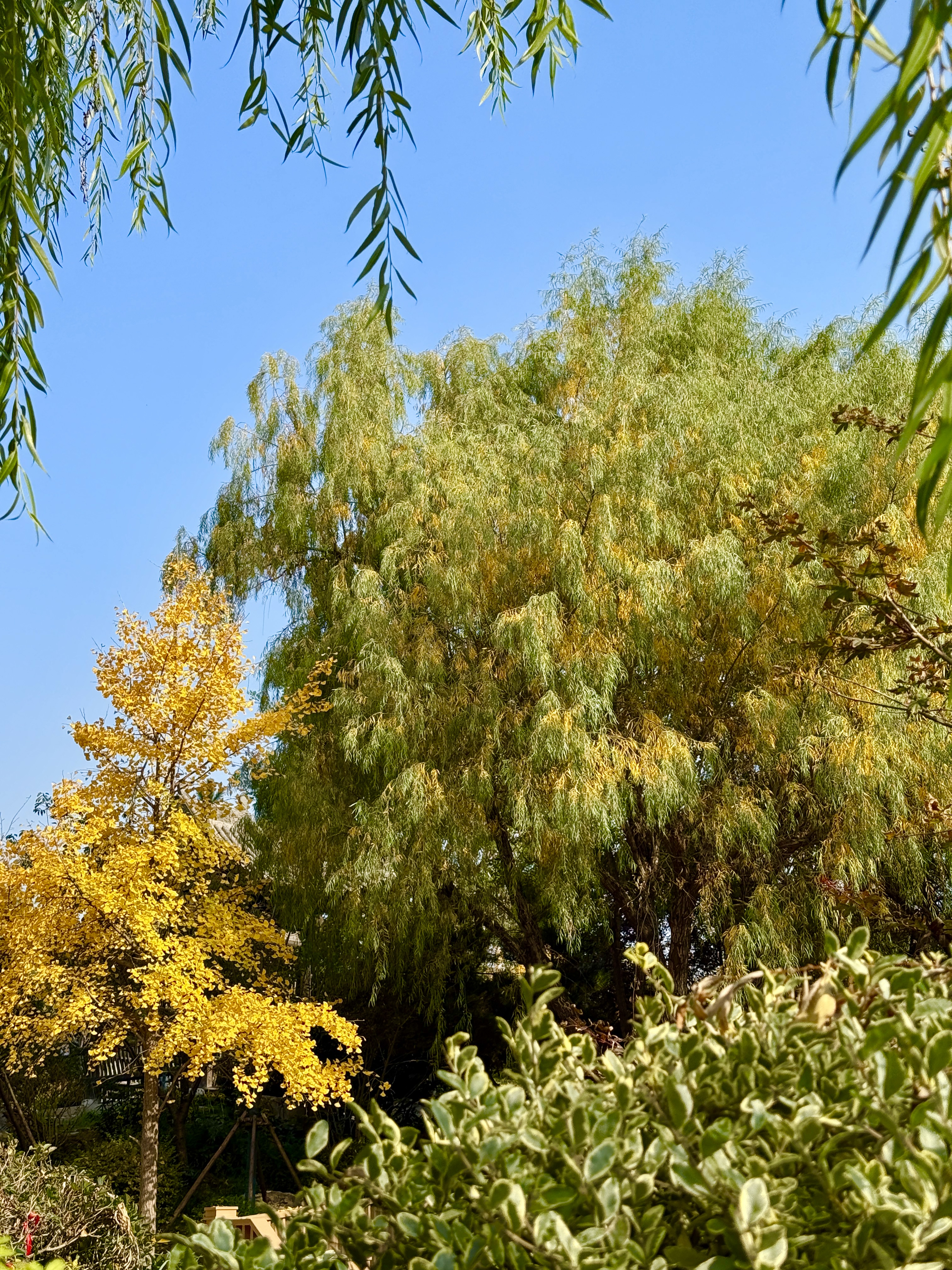 此外,景区紧邻张村河步行廊道,绿植很丰富,杨柳、竹子、银杏等树木繁茂,养眼静心,是个遛弯出片的好去处。