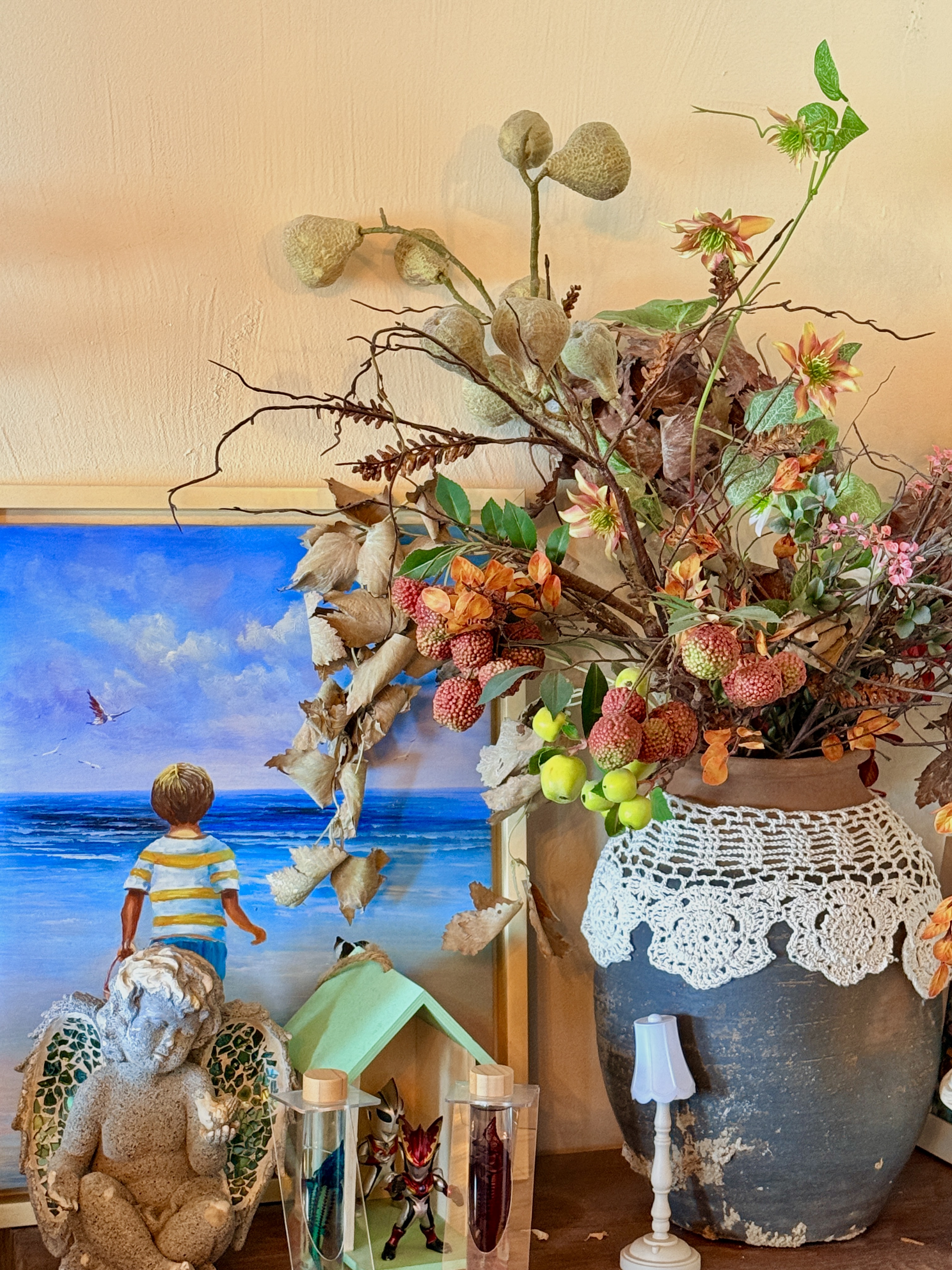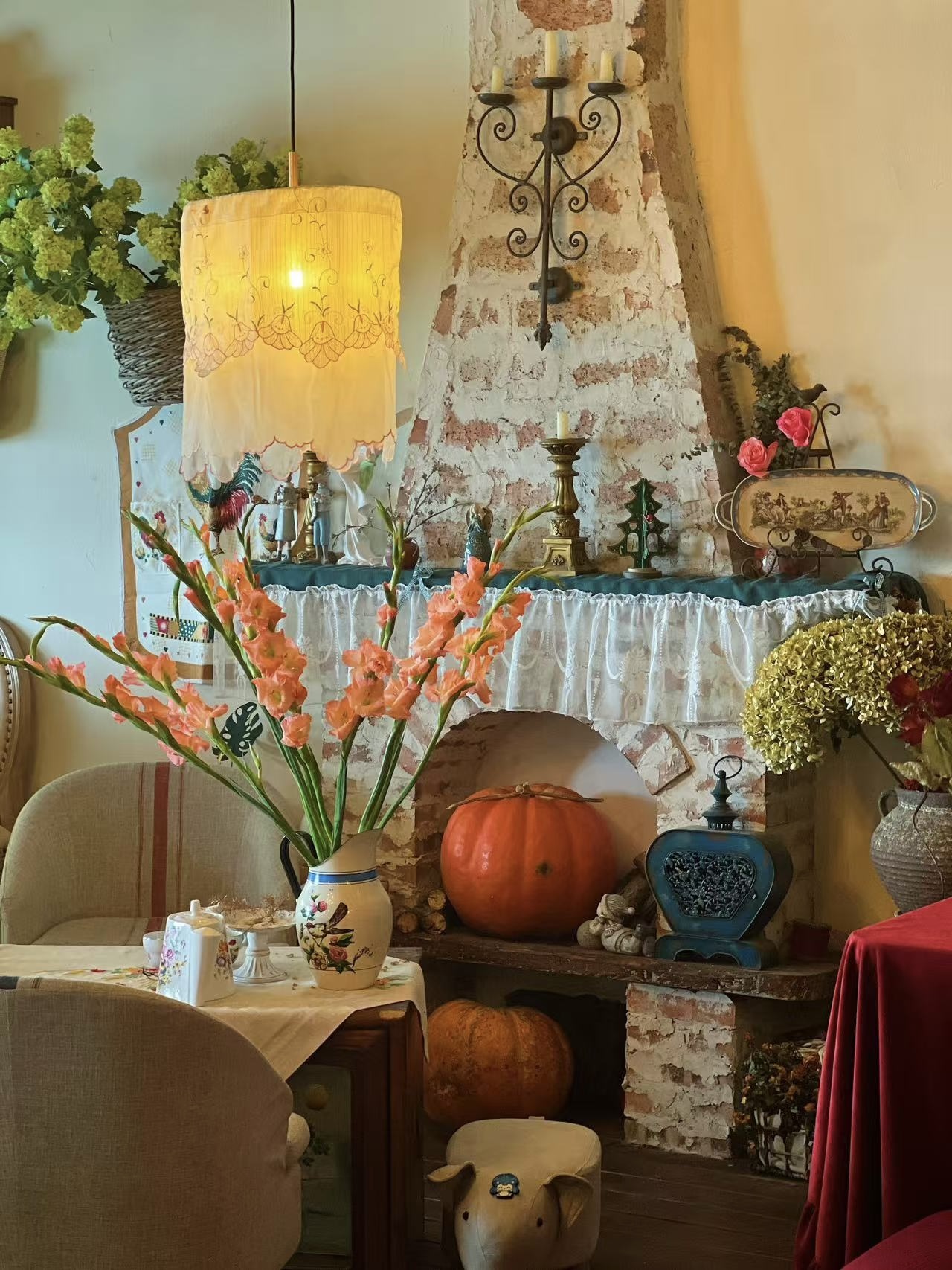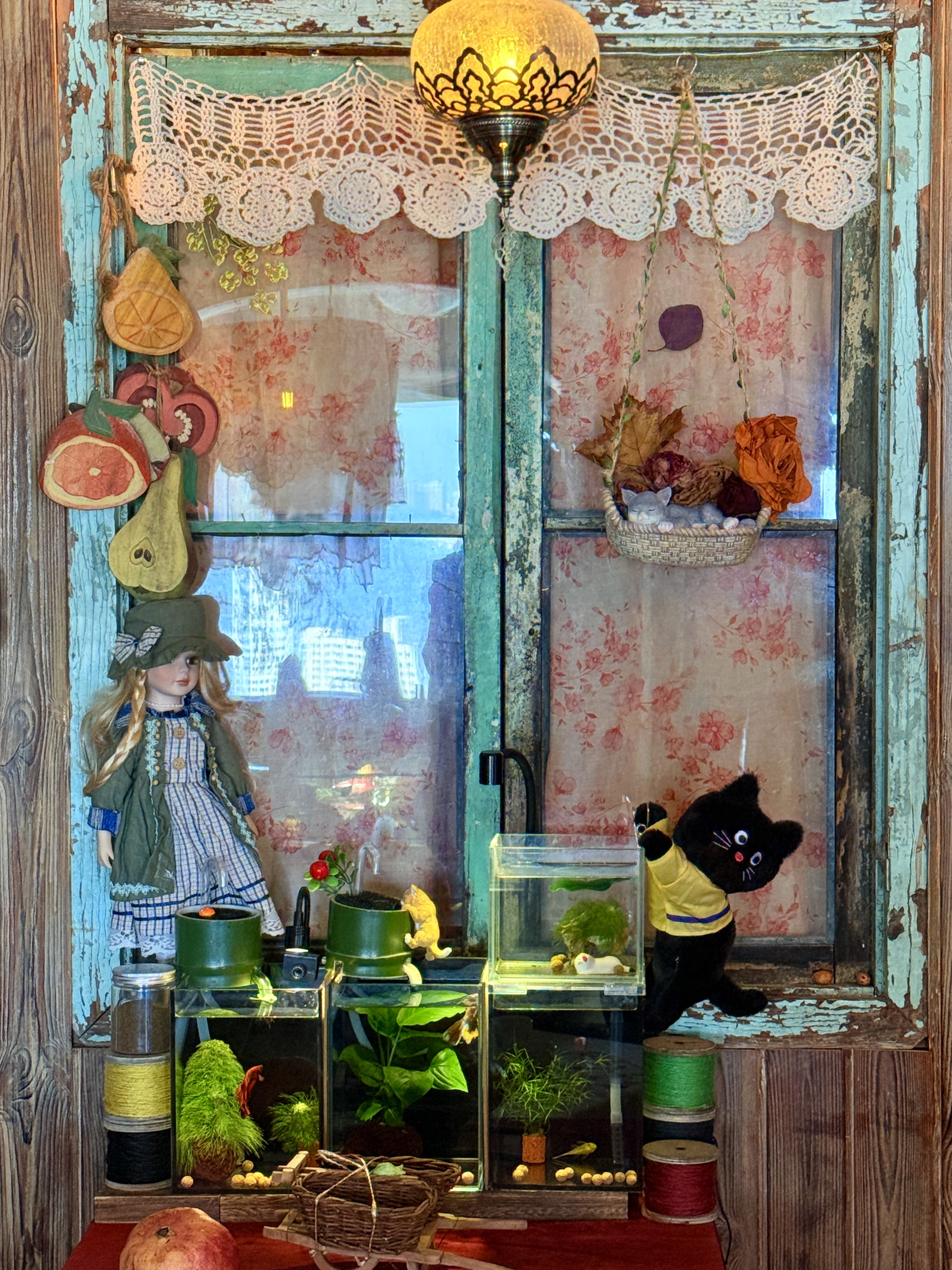 一步入店内,就被满眼的鲜花簇拥,如同爱丽丝梦游仙境般。因为自己的热爱,老板姐姐花心思打造了这个高空“田园”,除了满屋的花卉和植物,还有壁炉、桌布、帷幔、灯饰、花瓶......精致到了店里的每一个角落。白天的落日余晖,夜晚的璀璨夜景,透过超大的海景玻璃窗一览无余,再搭配唯美浪漫的布景装置,忍不住狂拍100张照片!