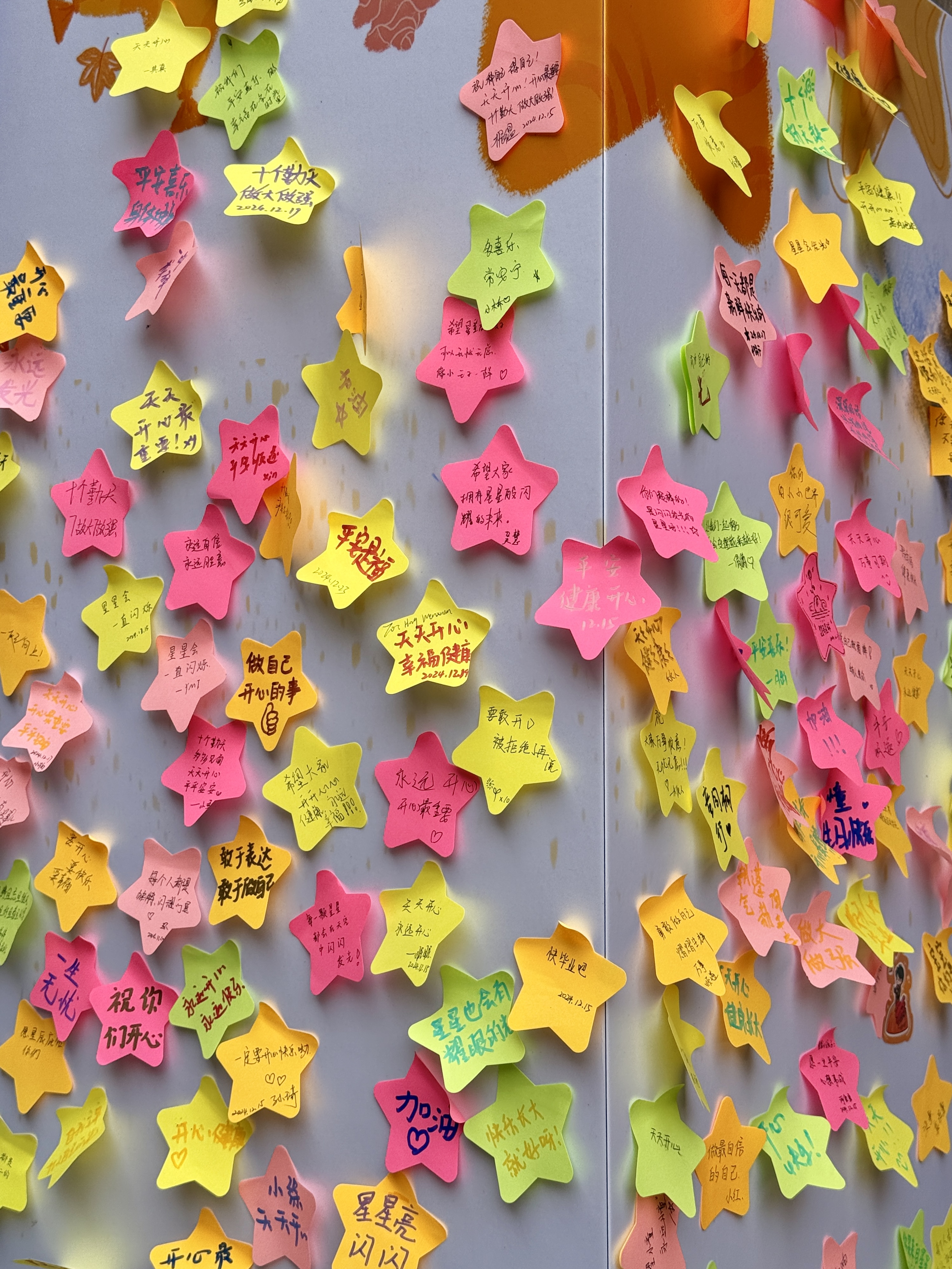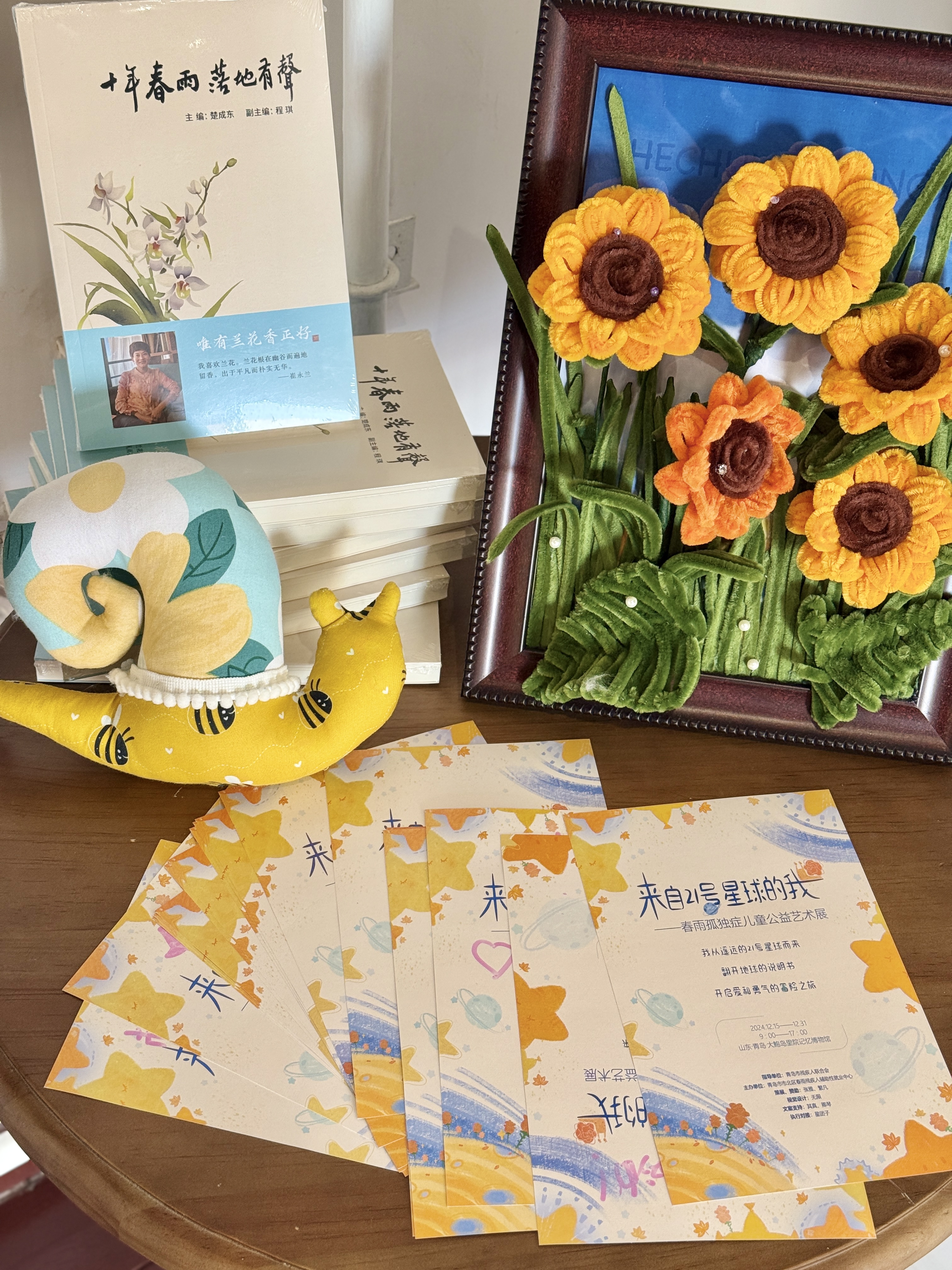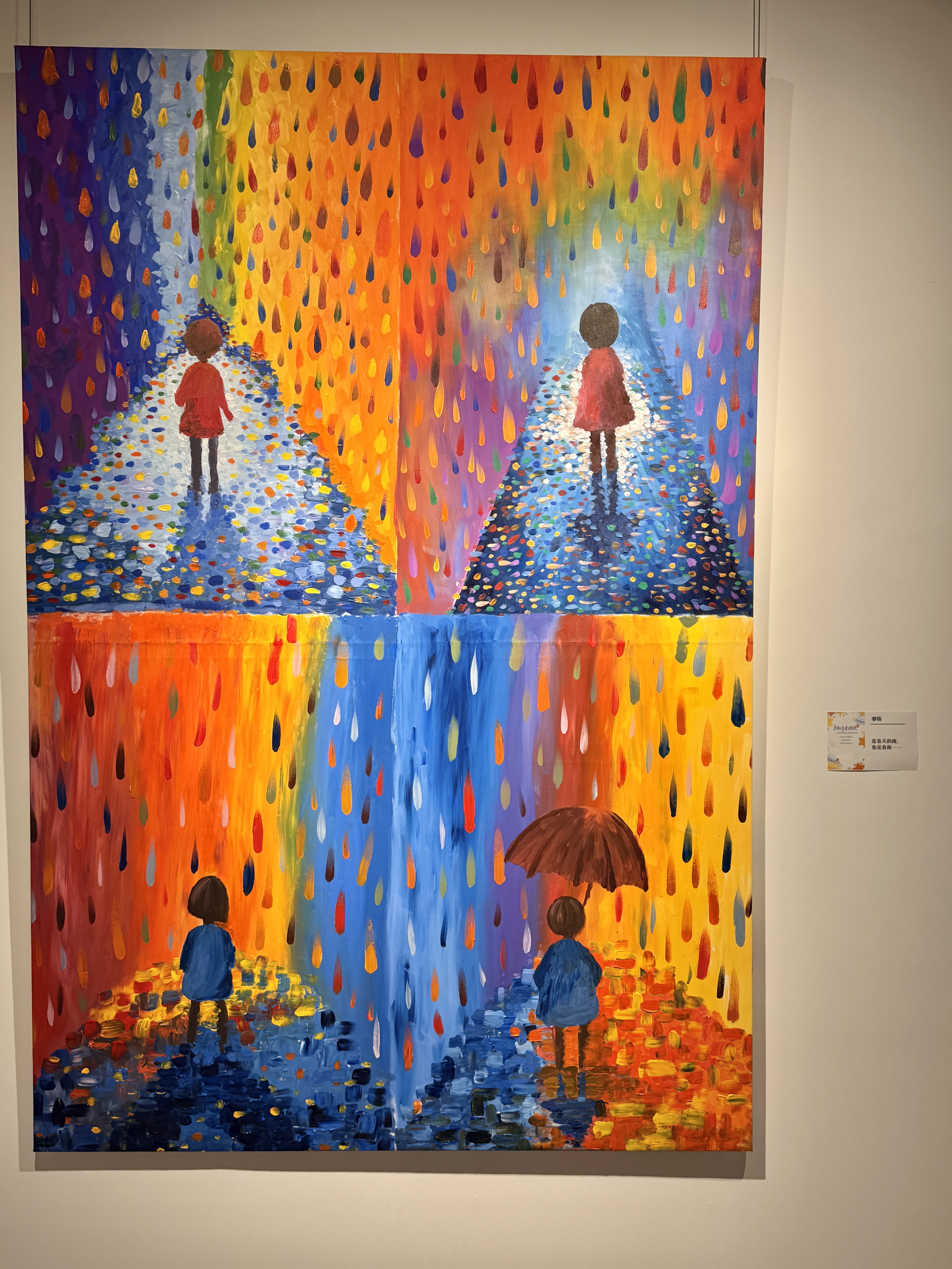 现场展出了很多绘画作品,无论色彩还是构图,每一幅作品都展现出“来自星星的孩子”们丰富的想象和艺术表现力。他们用画笔勾勒内心的轮廓,色彩与线条交织成灵魂的独白,每一幅画作都是一扇窗,表达着的大众不了解的“我”。这里没有尘世的喧嚣与纷扰,只有纯粹的抒发与无声的倾诉。以心为眼,才能真正感受这些被孤独包裹的灵魂。