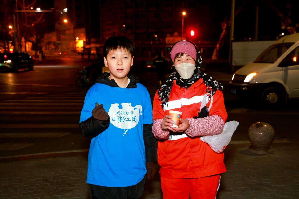 现场志愿者大多是青少年和家长们,家长们顶着寒风,以身作则言传身教,让孩子们了解城市街头早起劳动的户外工作者,感悟生活艰辛,学会感恩生活,用实际行动表达对他们的尊重与感激。