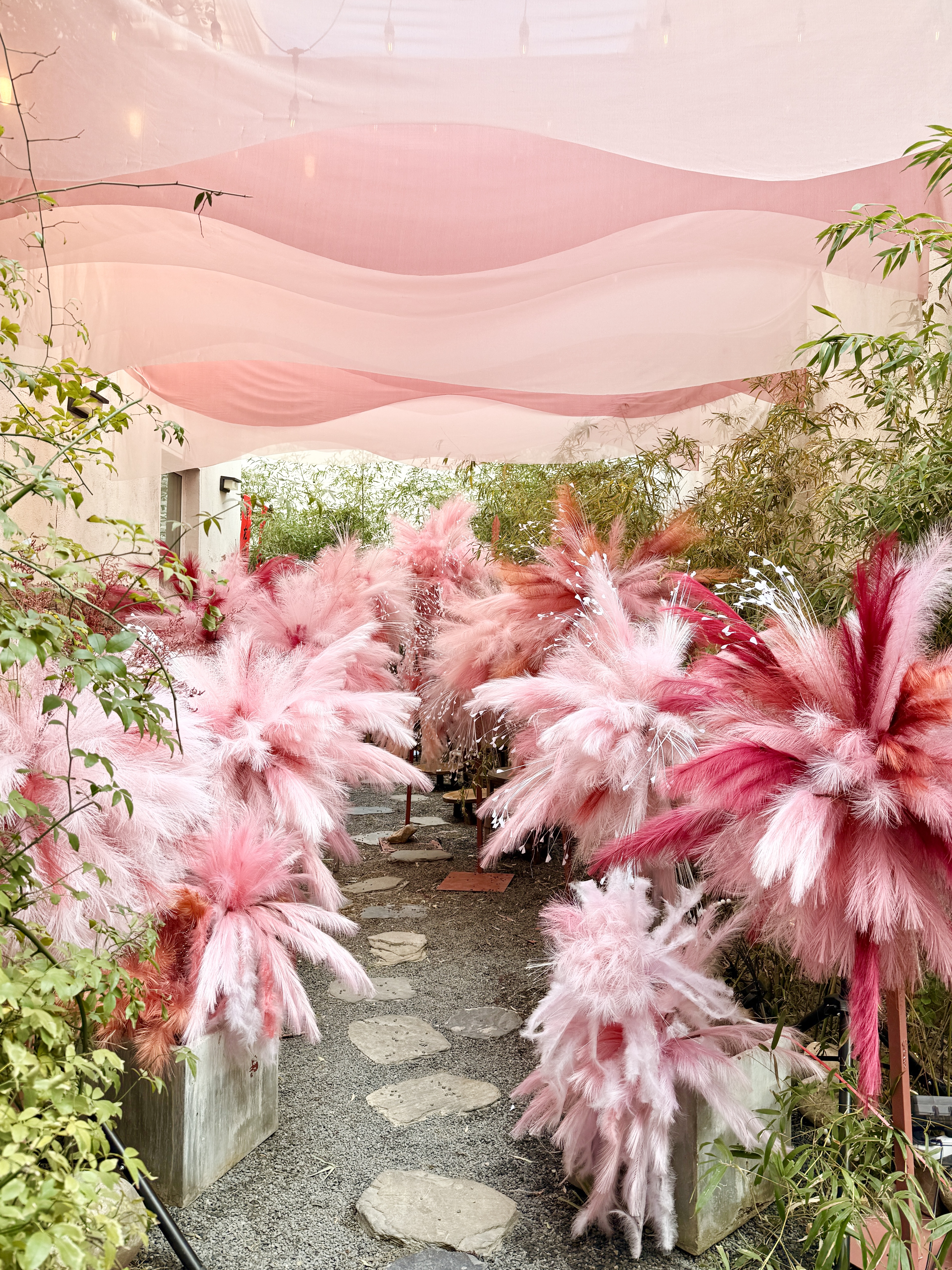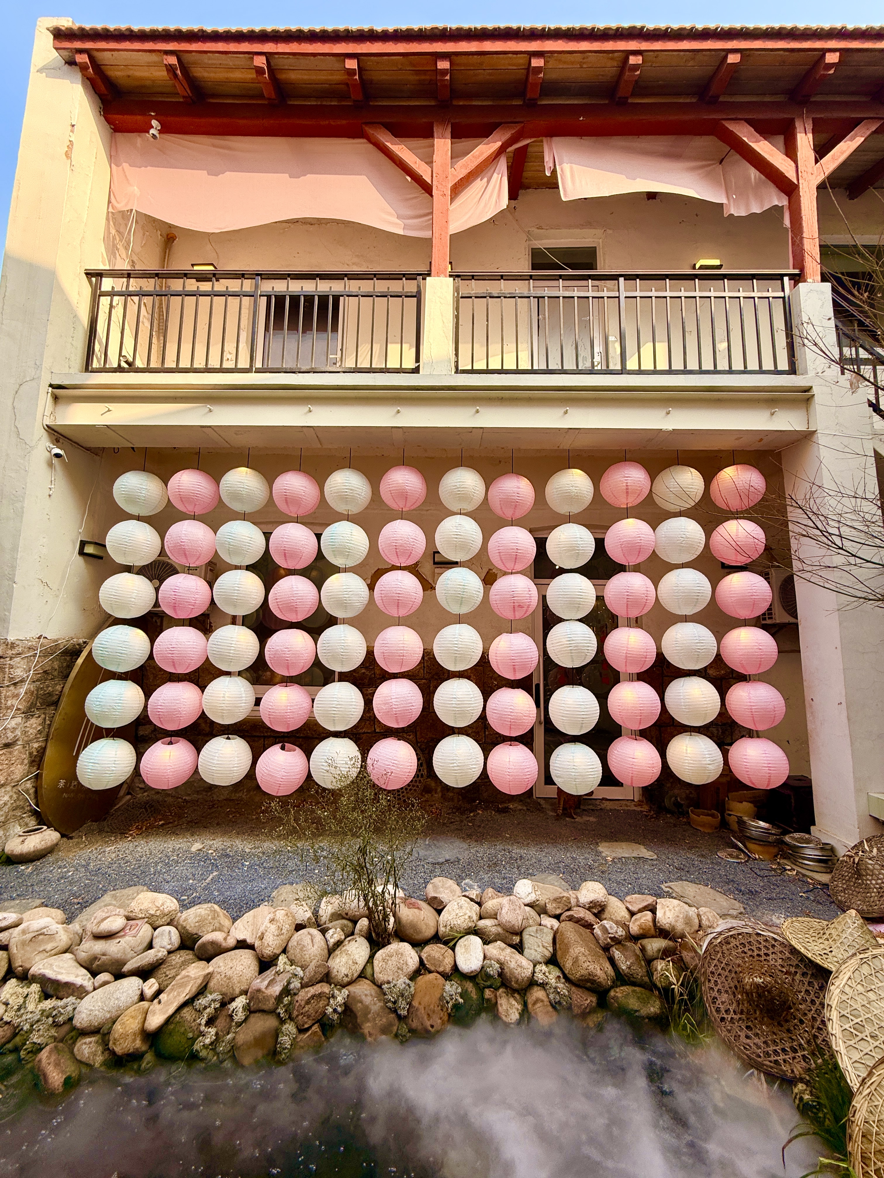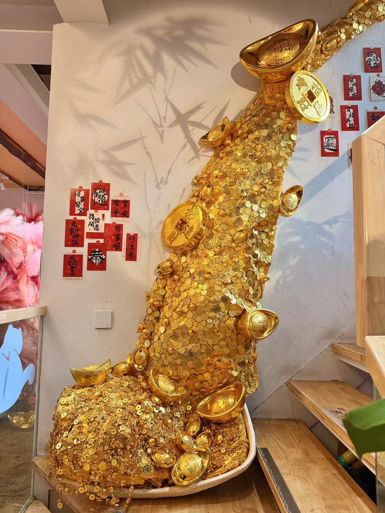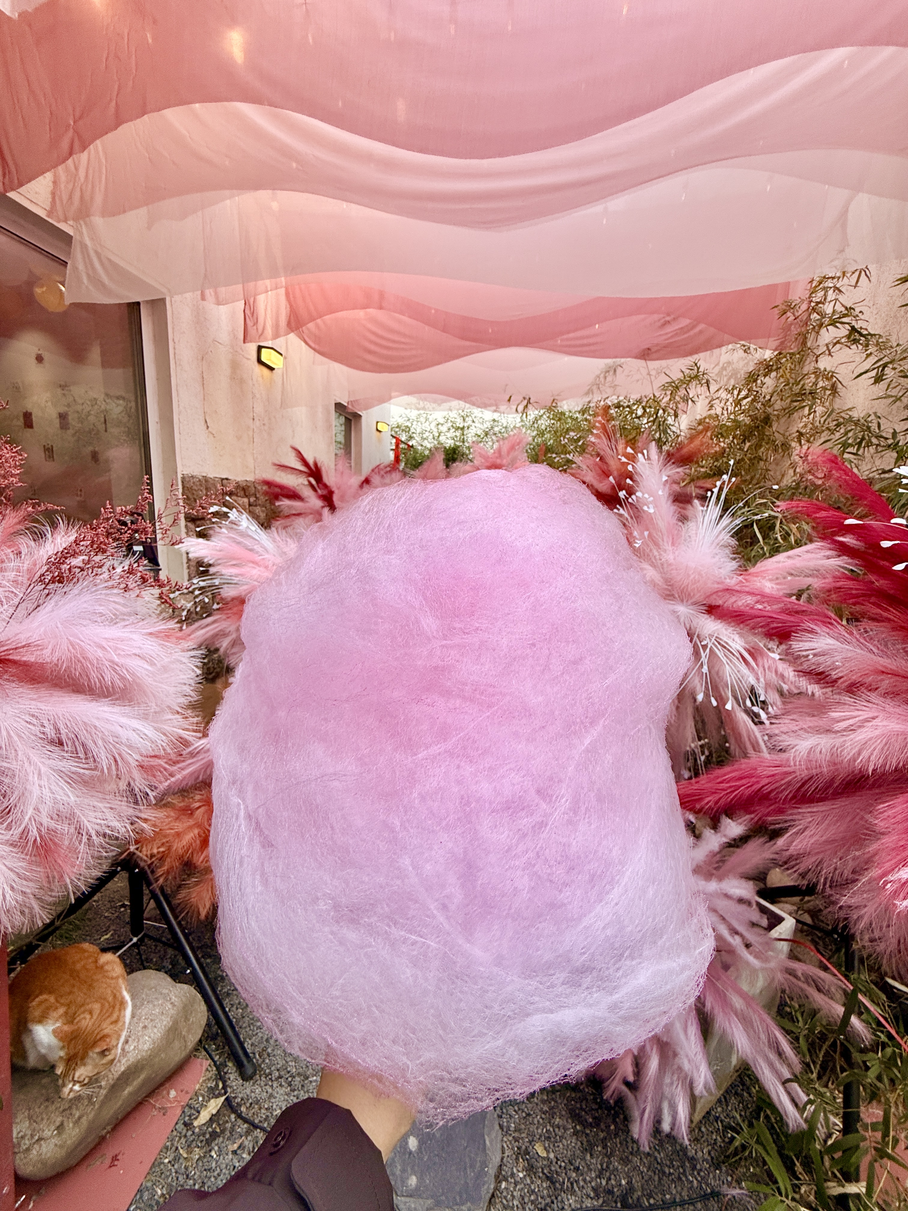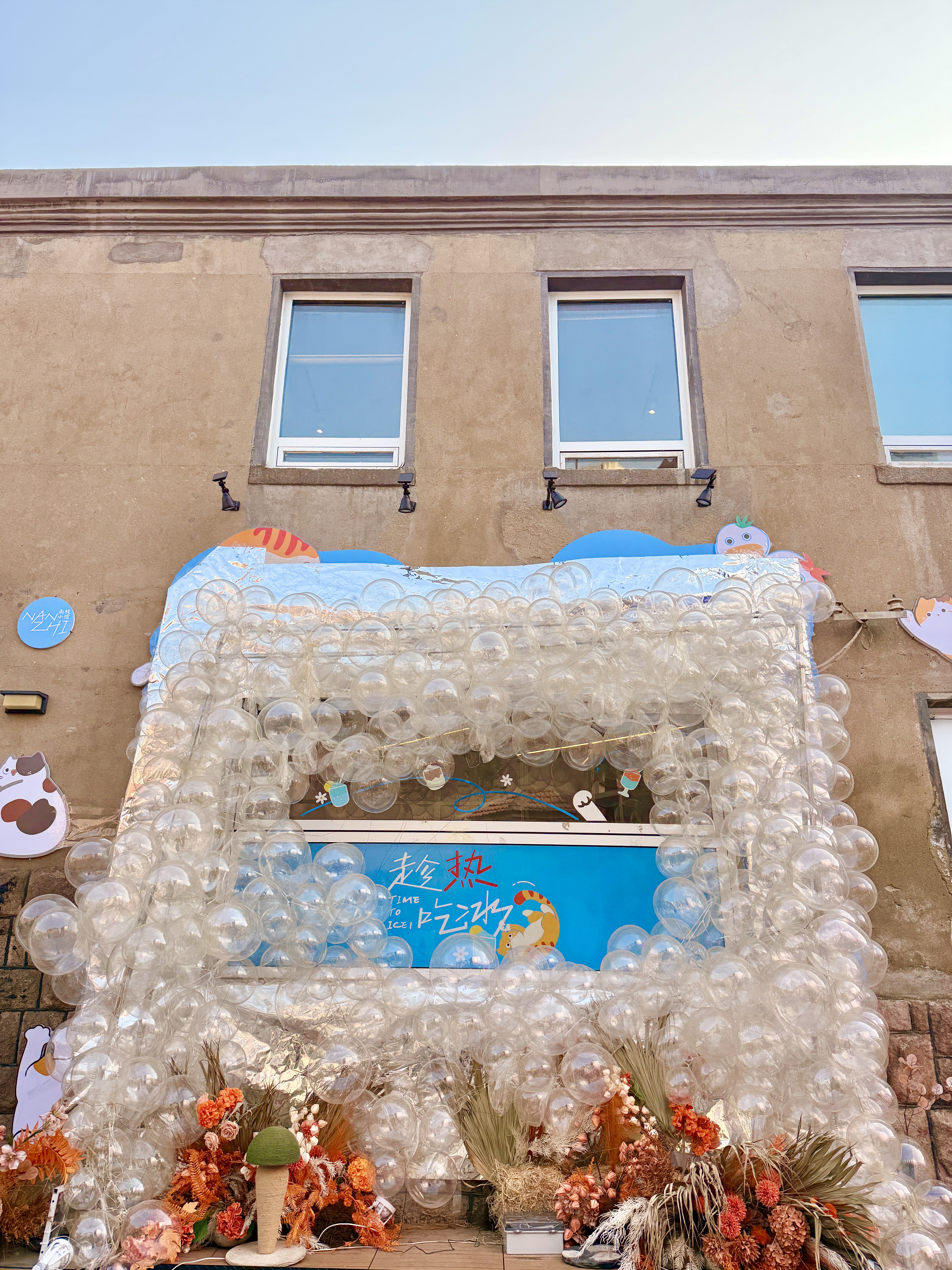 从室内到庭院全都是粉色系的新春装置,院落一隅还有春联,复古又清新,店里的喵主子们也盛装出席,都预备备好,准备提前过年啦!