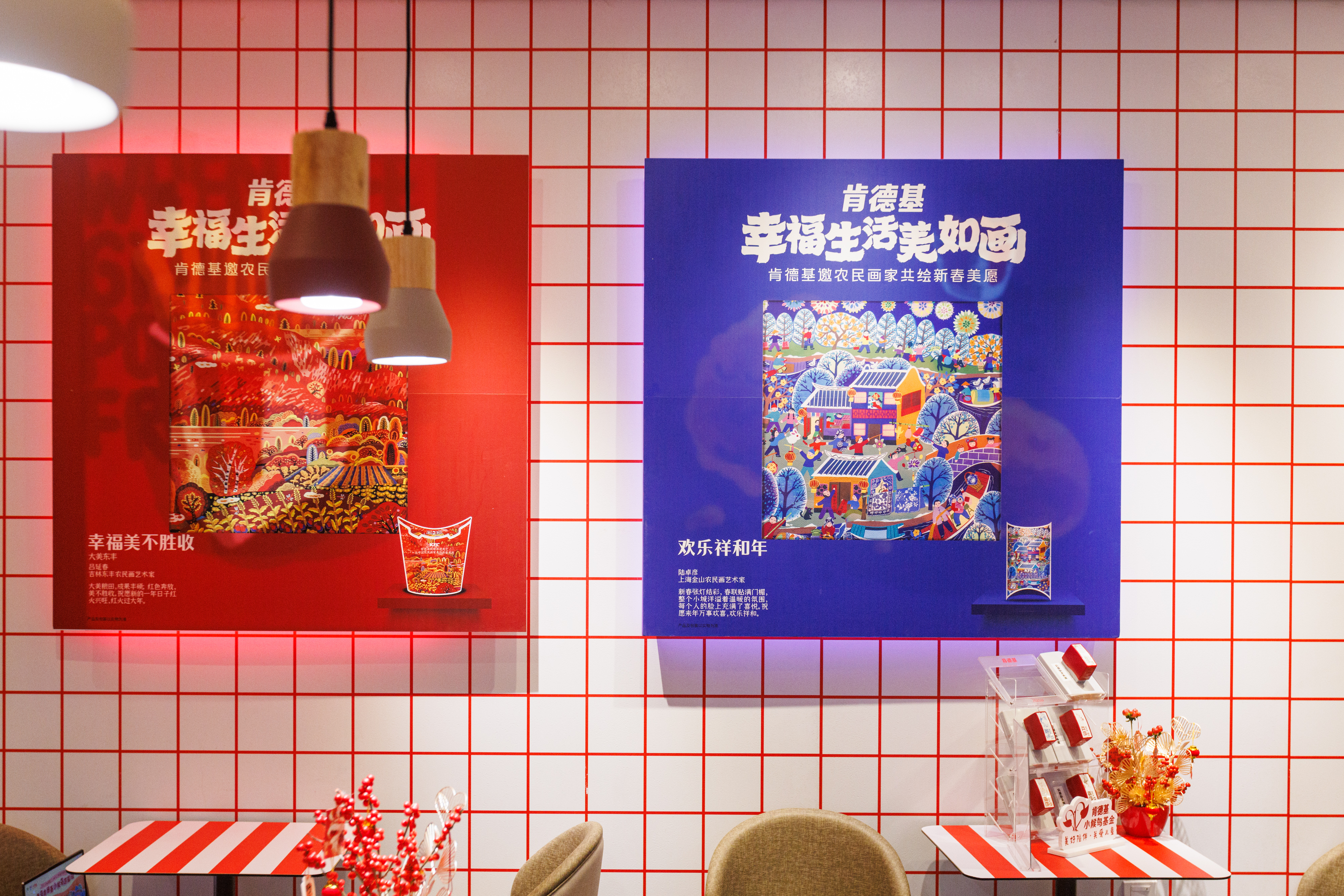肯德基也将“幸福生活美如画”的祝愿带给更多的消费者。肯德基联合四位来自全国的农民画艺术家,推出农历新年特色包装,并结合年轻人喜欢的敲章打卡的习惯,在23家农民画主题餐厅推出新春限定农民画套色章,吸引大家进店集章“敲”幸福。