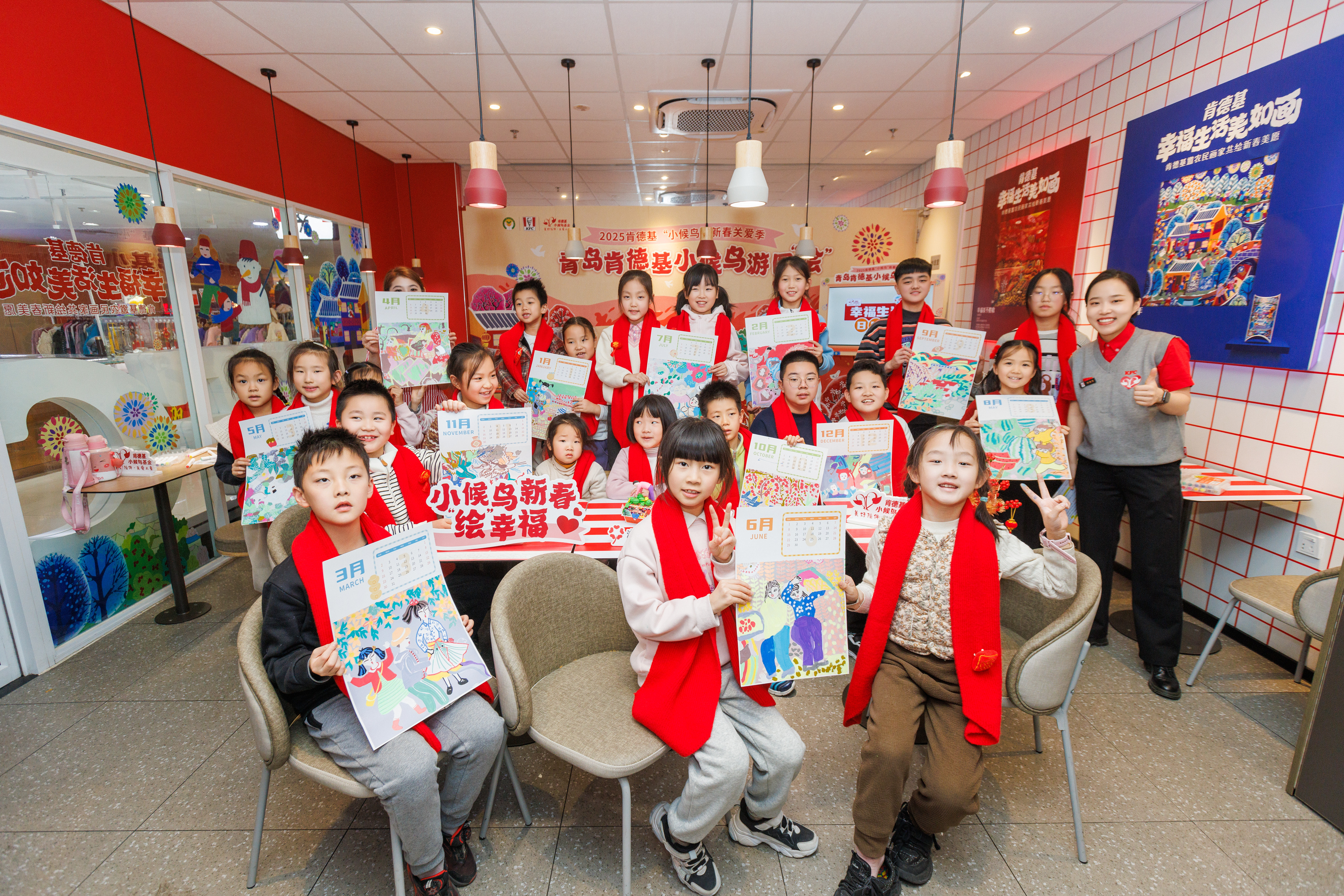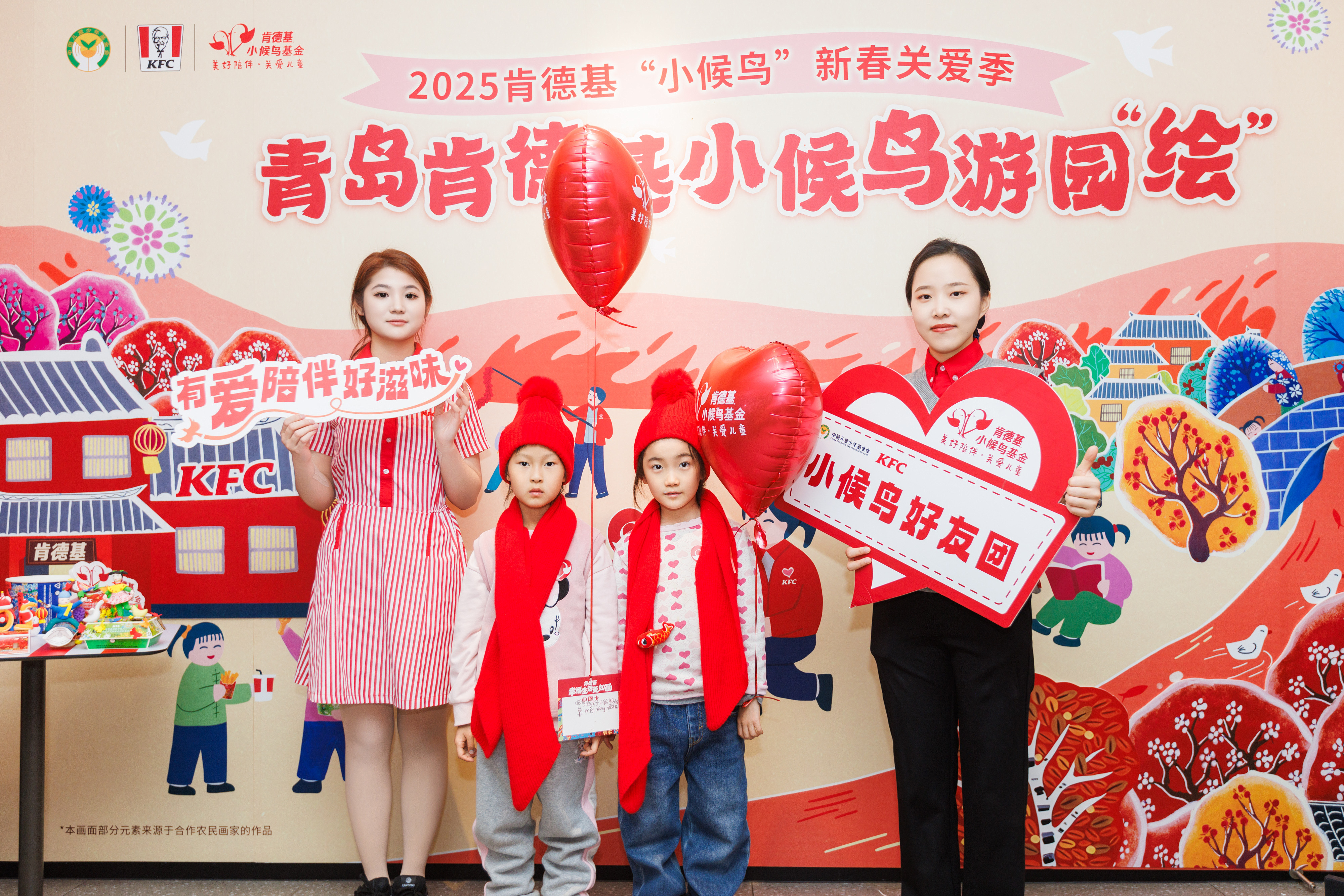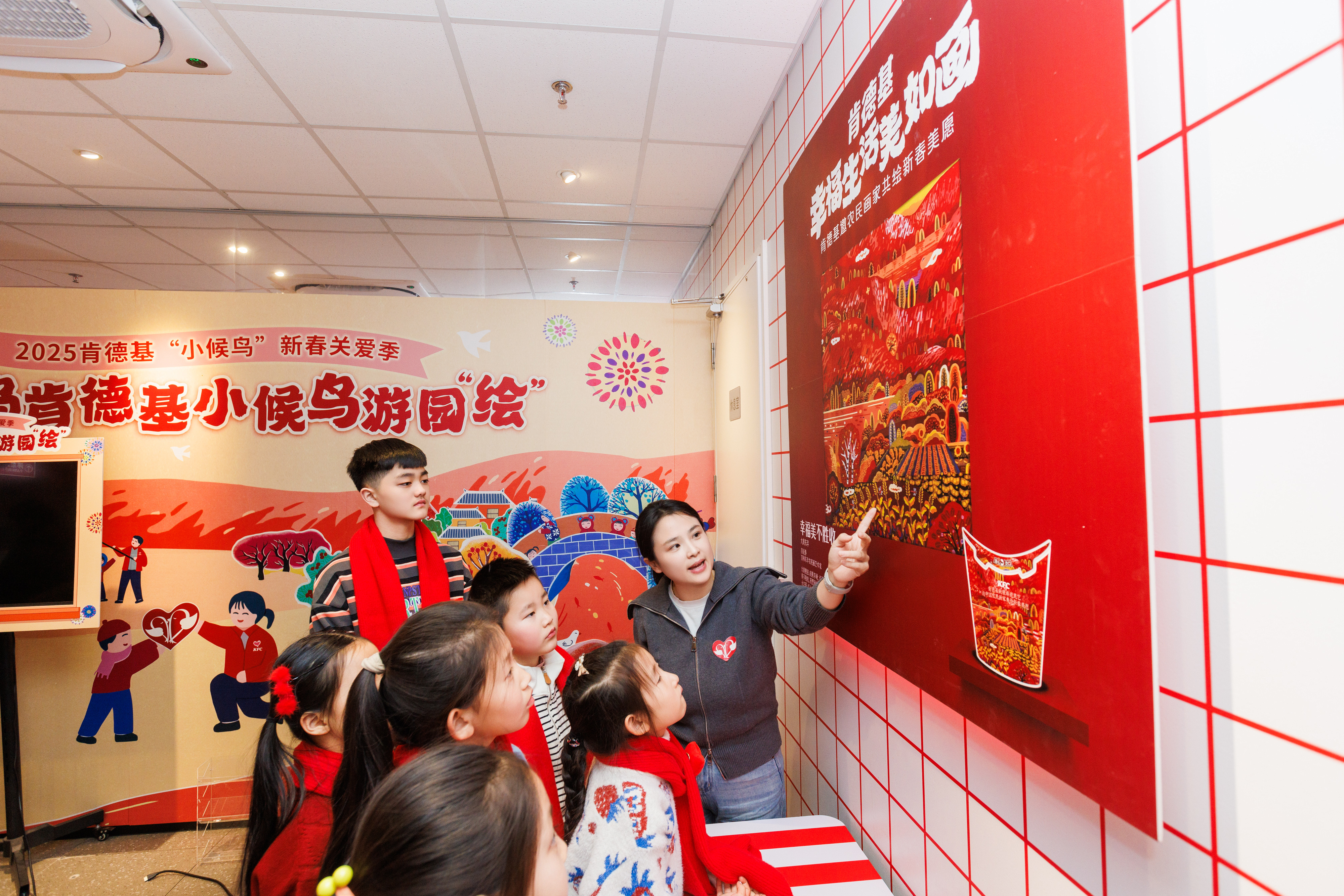 在山东省妇女儿童发展基金会、青岛市志愿服务联合会、青岛市市南区汇百川社会工作服务中心和青岛市广播电视台“潮汐公益”的共同支持下,“2025肯德基小候鸟新春游园‘绘’”活动温暖启幕。来自青岛各区的流动、留守和困境儿童走进青岛肯德基农民画主题餐厅,浓浓的年味扑面而来。墙面上一幅幅浓墨重彩的农民画极具张力,展现着顺应四时播种百谷的农耕智慧,令人感受到万物生发的蓬勃生命力。