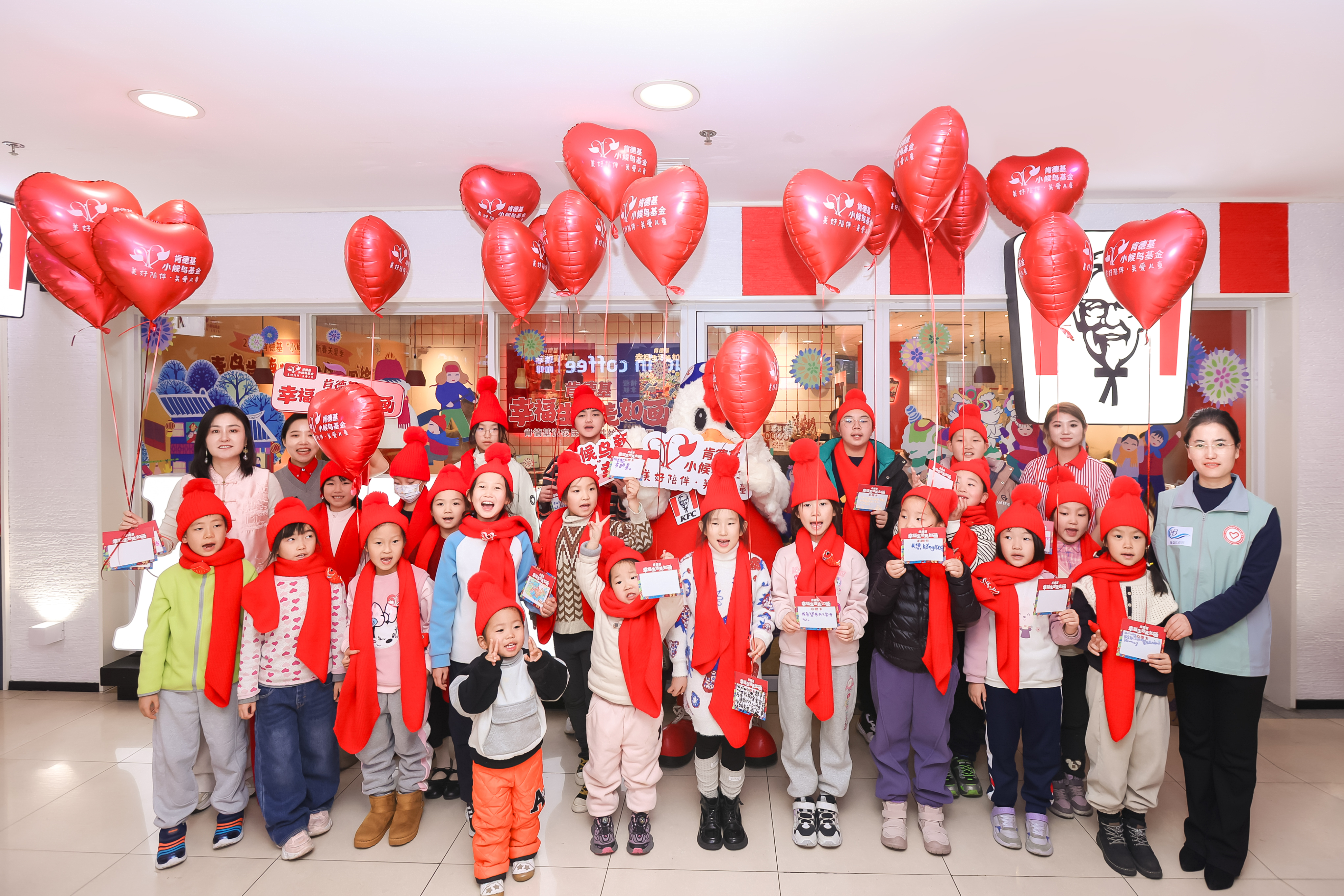 2016年,肯德基携手中国少年儿童基金会成立肯德基小候鸟基金,在全国范围内通过阅读、艺术、体育等多种形式的活动呵护流动、留守和困境儿童的成长。成立至今,肯德基已累计向中国儿童少年基金会捐款超过4000万元,打造2000余个图书角,累计捐书超过110万册。2024年,肯德基小候鸟基金向全国14个省份的千名困境儿童发放关爱成长金,并通过“好友团”在各种关爱活动中的持续陪伴,助力困境儿童快乐成长。