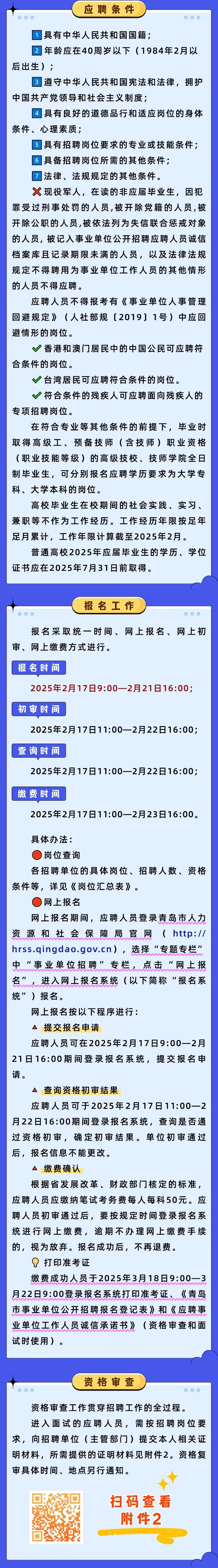 2025年青岛市市属事业单位公开招聘简章来啦‼