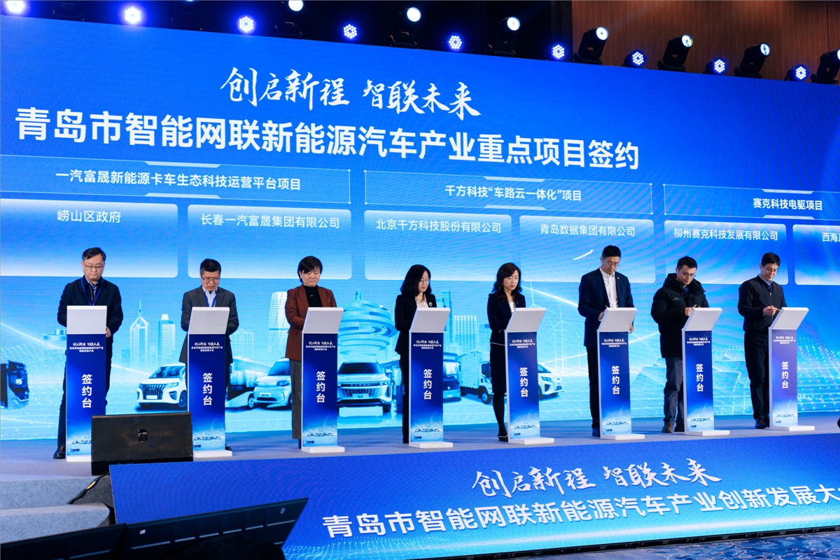 今日的青岛,汇聚产学研“最强大脑”,拥有产业政策“全方位支撑”,打造营商环境“一流服务”,坐拥得天独厚区位优势,正吸引一系列优质项目落户。本次大会紧抓行业趋势、深化合作对接,必将为青岛智能网联新能源汽车产业高质量发展注入新的动能。会上,“车路云一体化”智能网联(青岛)应用研究院有限公司、一汽富晟新能源卡车生态科技运营平台、千方科技“车路云一体化”、驭势科技港口自动驾驶项目、赛克科技电驱等优质项目签约落地,智能网联新能源汽车产业集聚能力和规模效应持续凸显。