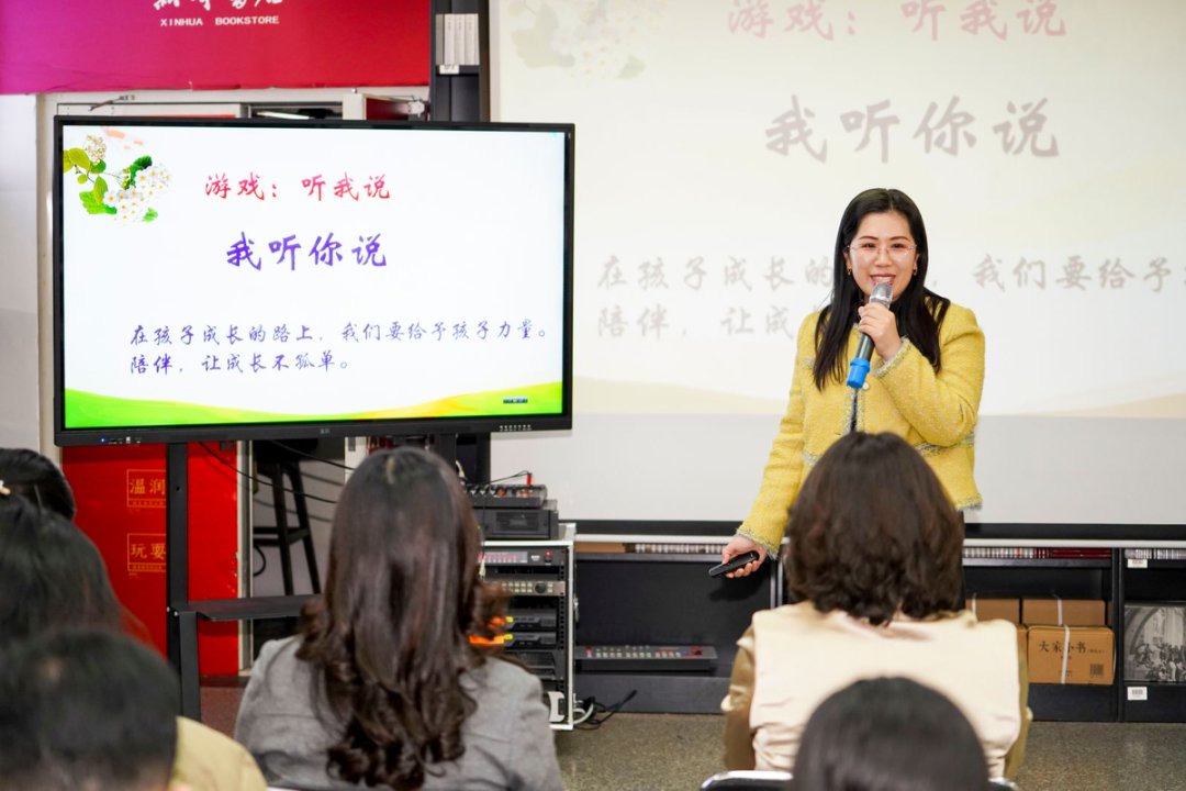 线下将青岛新华书店设为主会场,青岛市教育科学研究院德育与家庭教育研究中心家庭教育教研员王蕾老师,青岛市市北区家庭教育教研员史文辉老师、青岛市崂山区家庭教育教研员张彩欣老师以及各区市的家庭教育骨干教师和部分家长代表现场聆听了讲座。
