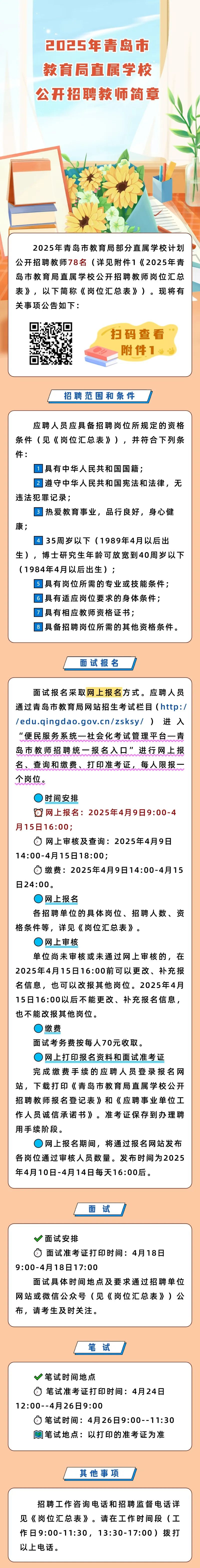 事业编‼️78人‼️2025年青岛市教育局直属学校公开招聘