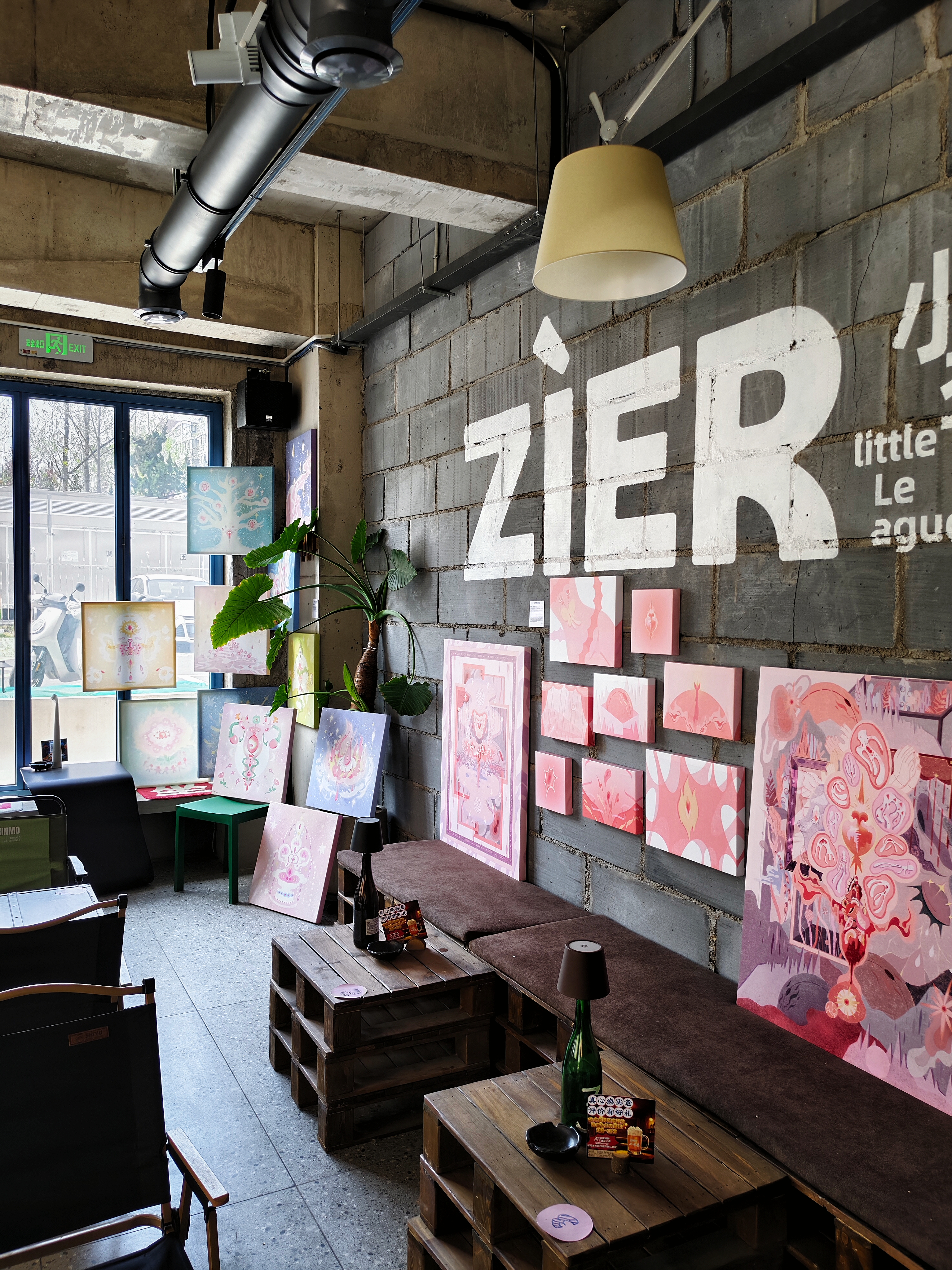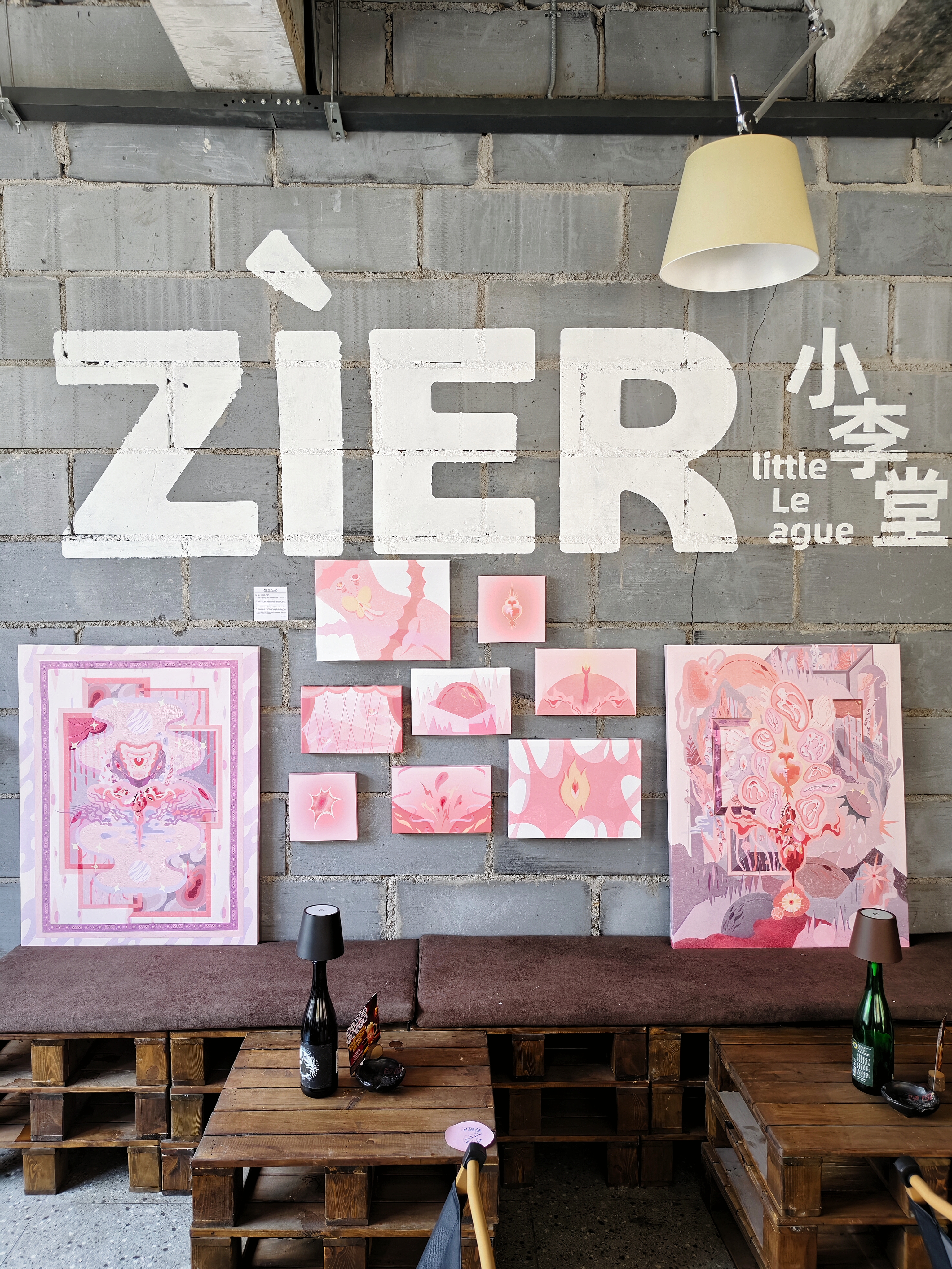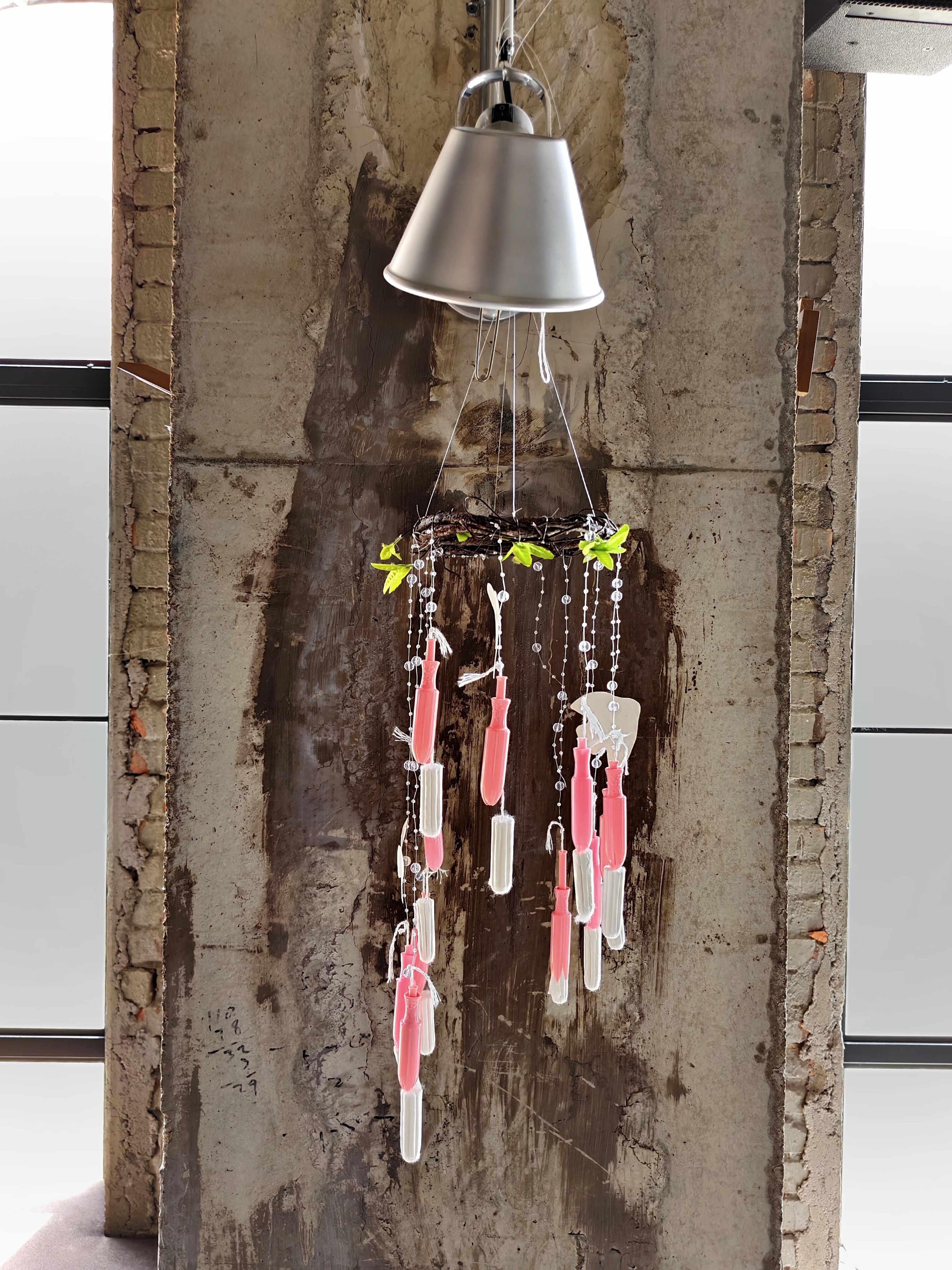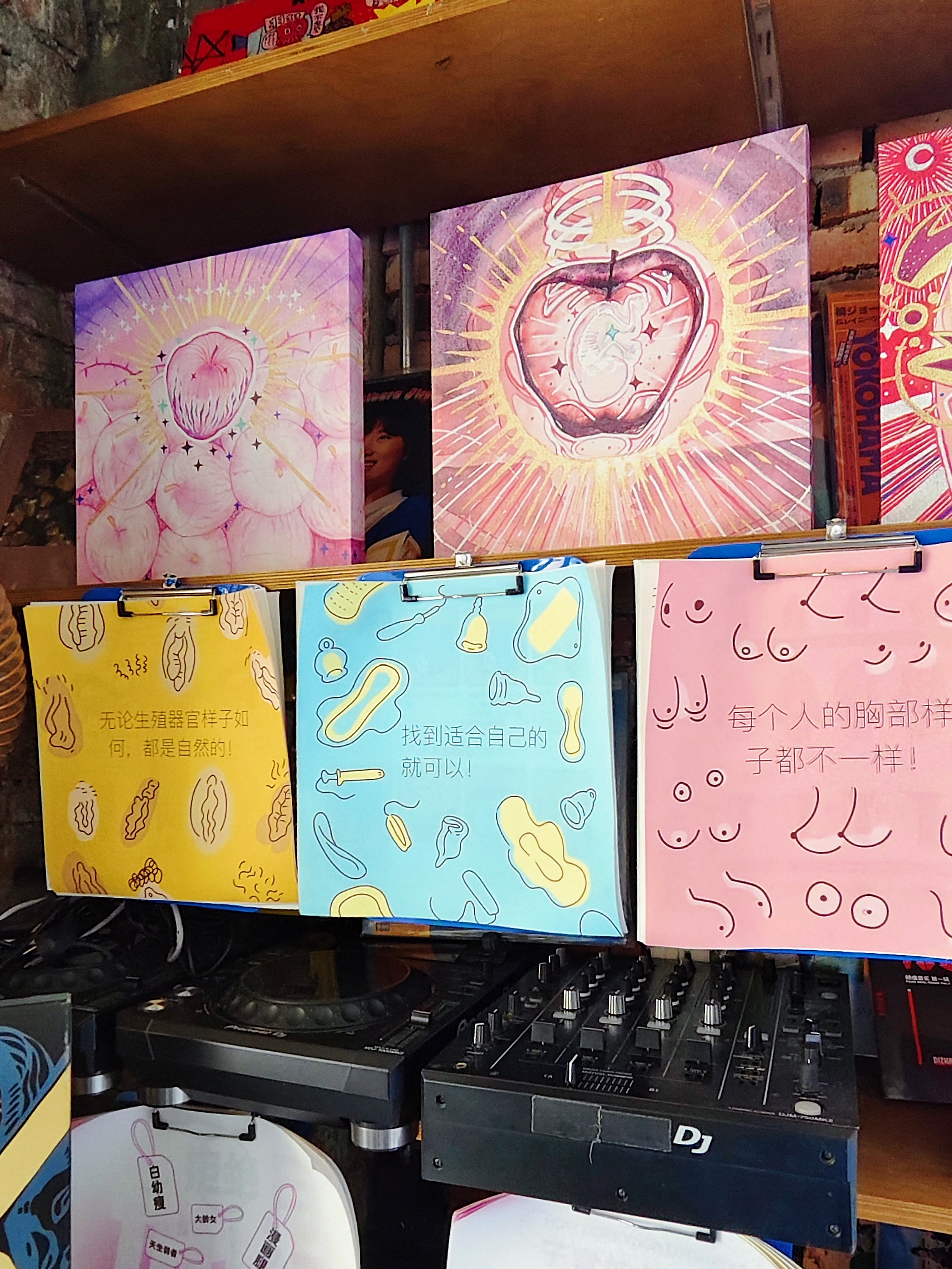 展墙上绣着花朵的卫生巾,绘满故事的棉条,拼贴成画的护垫,都在讲述着女性日常的诗意。
