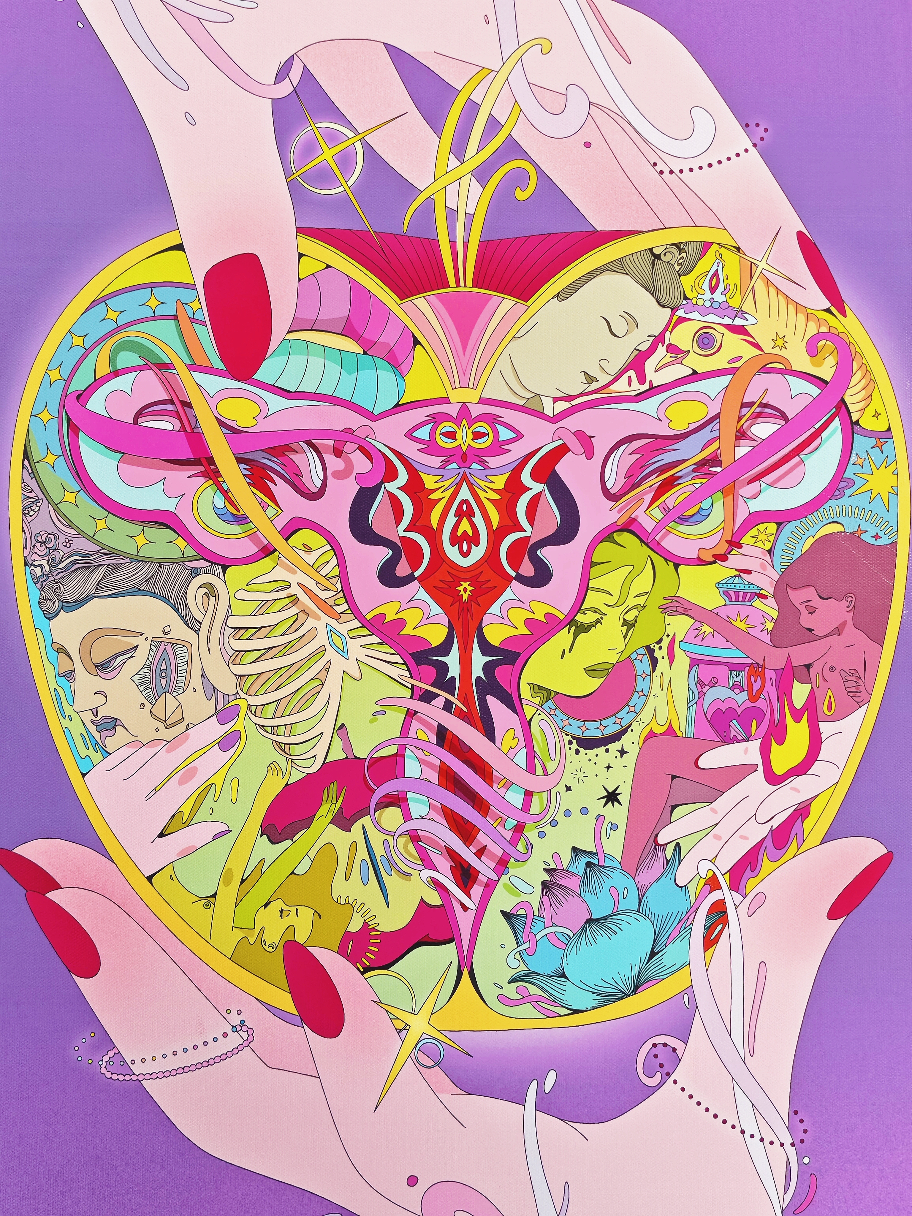 那些以生殖系统为灵感的画作,用或抽象或具象的笔触温柔地诉说着:女性身体值得被理解、被珍视。