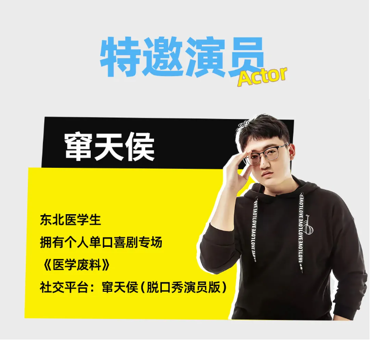 @窜天侯,东北医学生,拥有个人单口戏剧专场《医学废料》。
