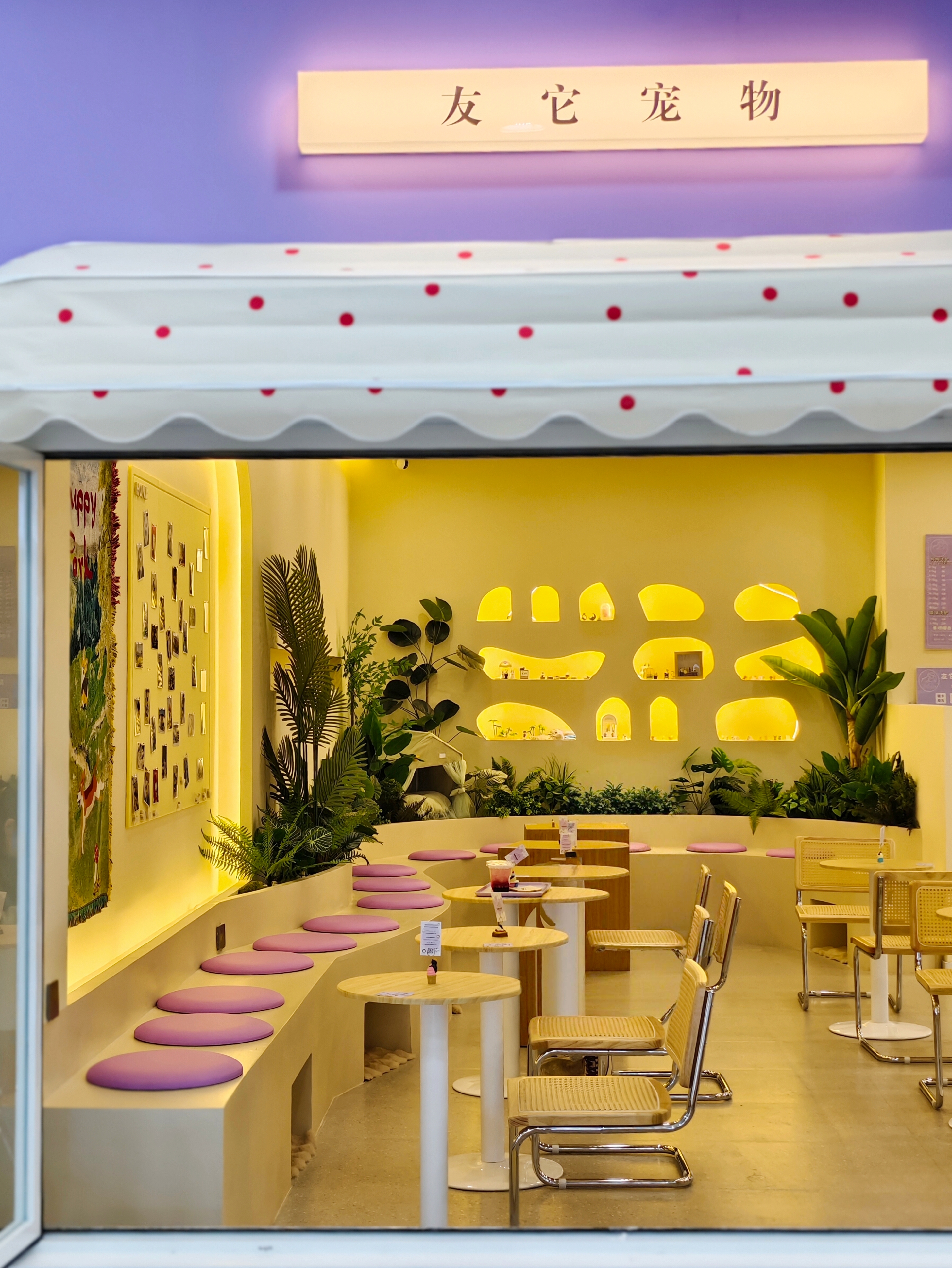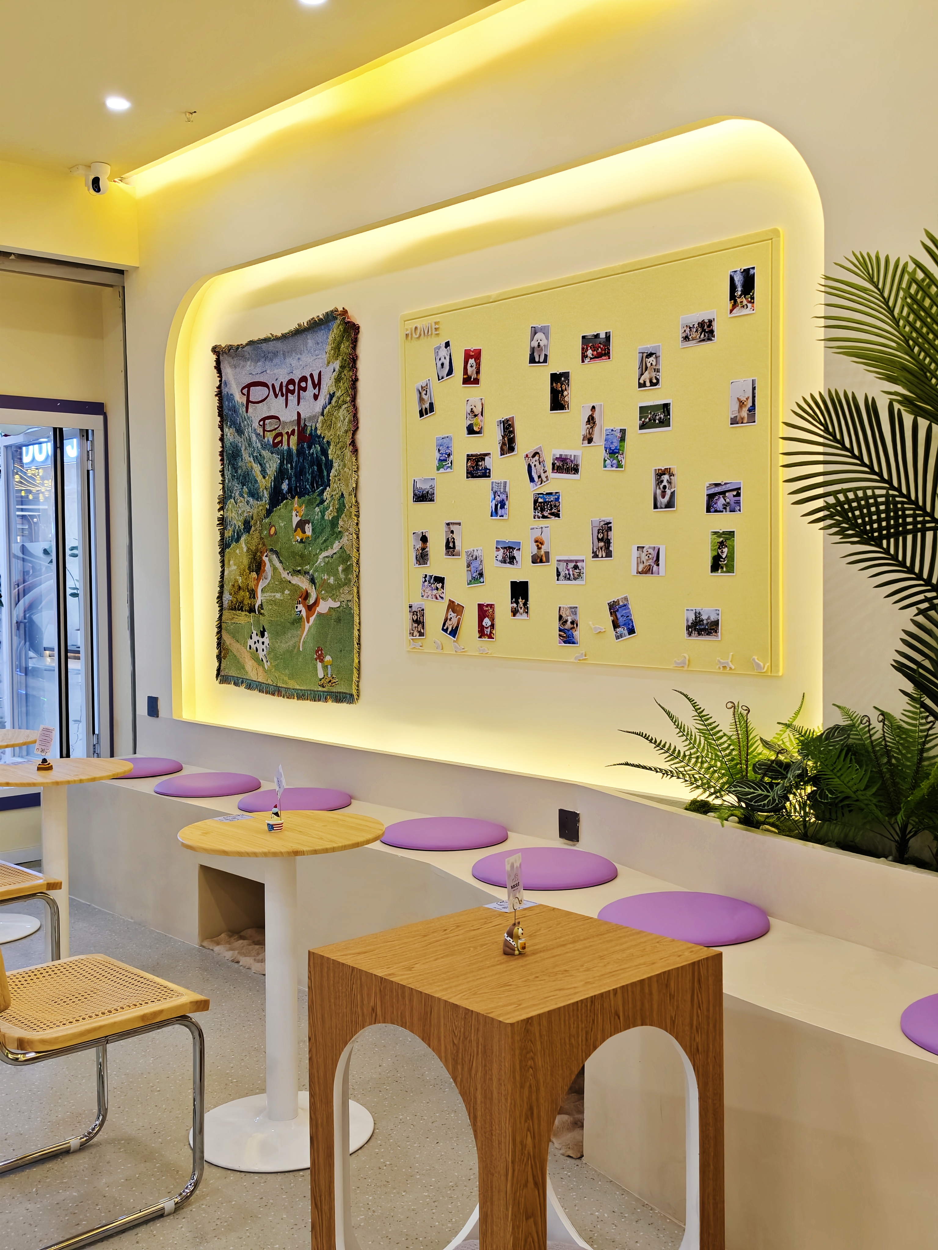 推门就被治愈到了,整个店是温柔的淡紫色调,柔和的灯光下,毛孩子们探头探脑的样子太可爱了,这里简直是养宠人的快乐老家。