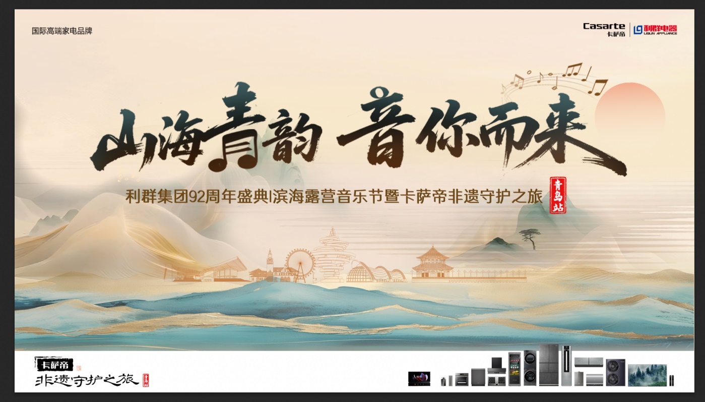 从剪纸艺术到智能家电,从编钟古乐到电子音浪,6月14日的唐岛湾将成为传统与未来的对话场域。这场跨越92年的品牌盛会,不仅是利群与卡萨帝的实力见证,更是“生活艺术化”理念的生动诠释。这个夏日,邀您共赴山海之约,在音乐与科技的共鸣中,发现生活的万千可能。