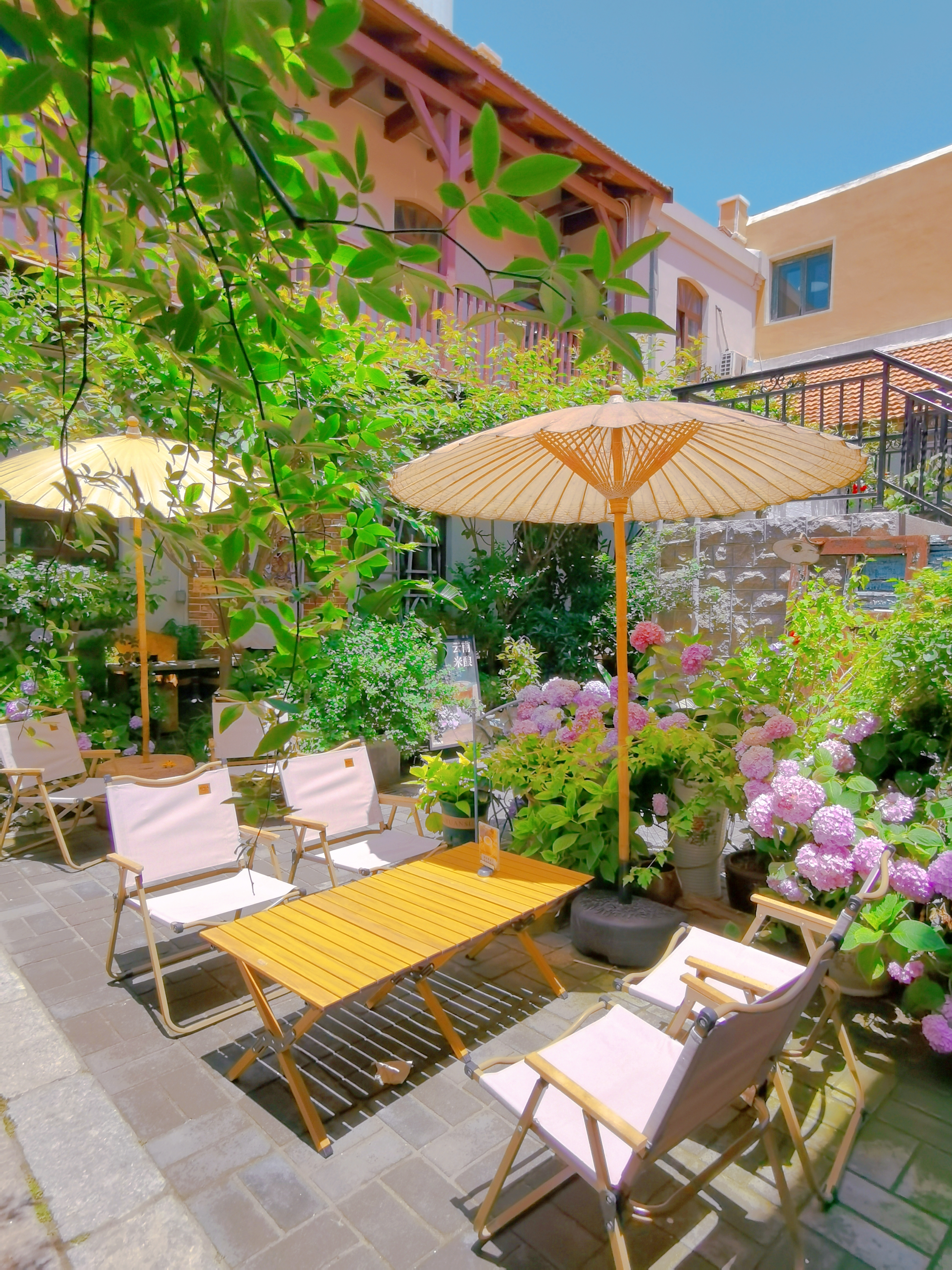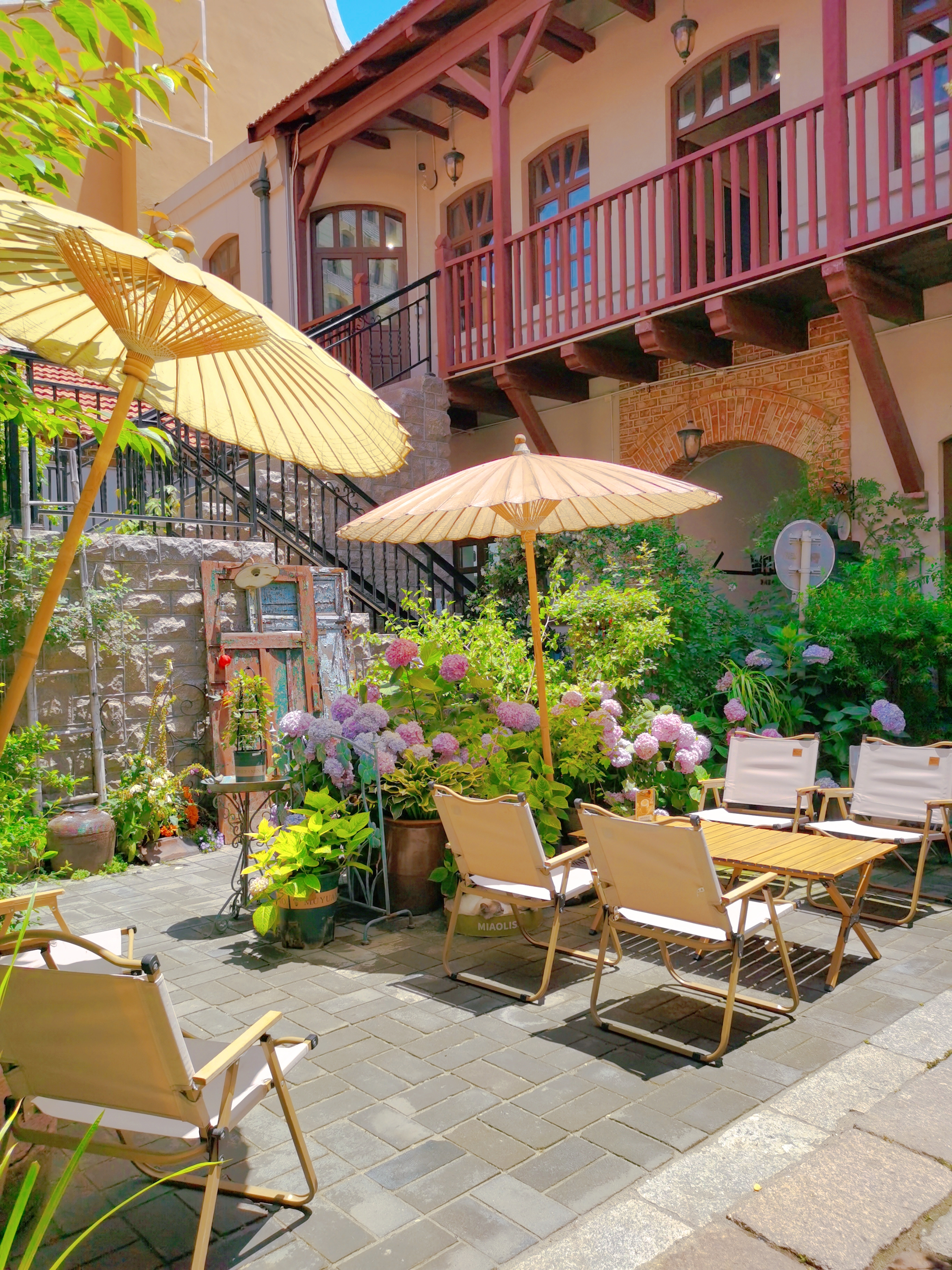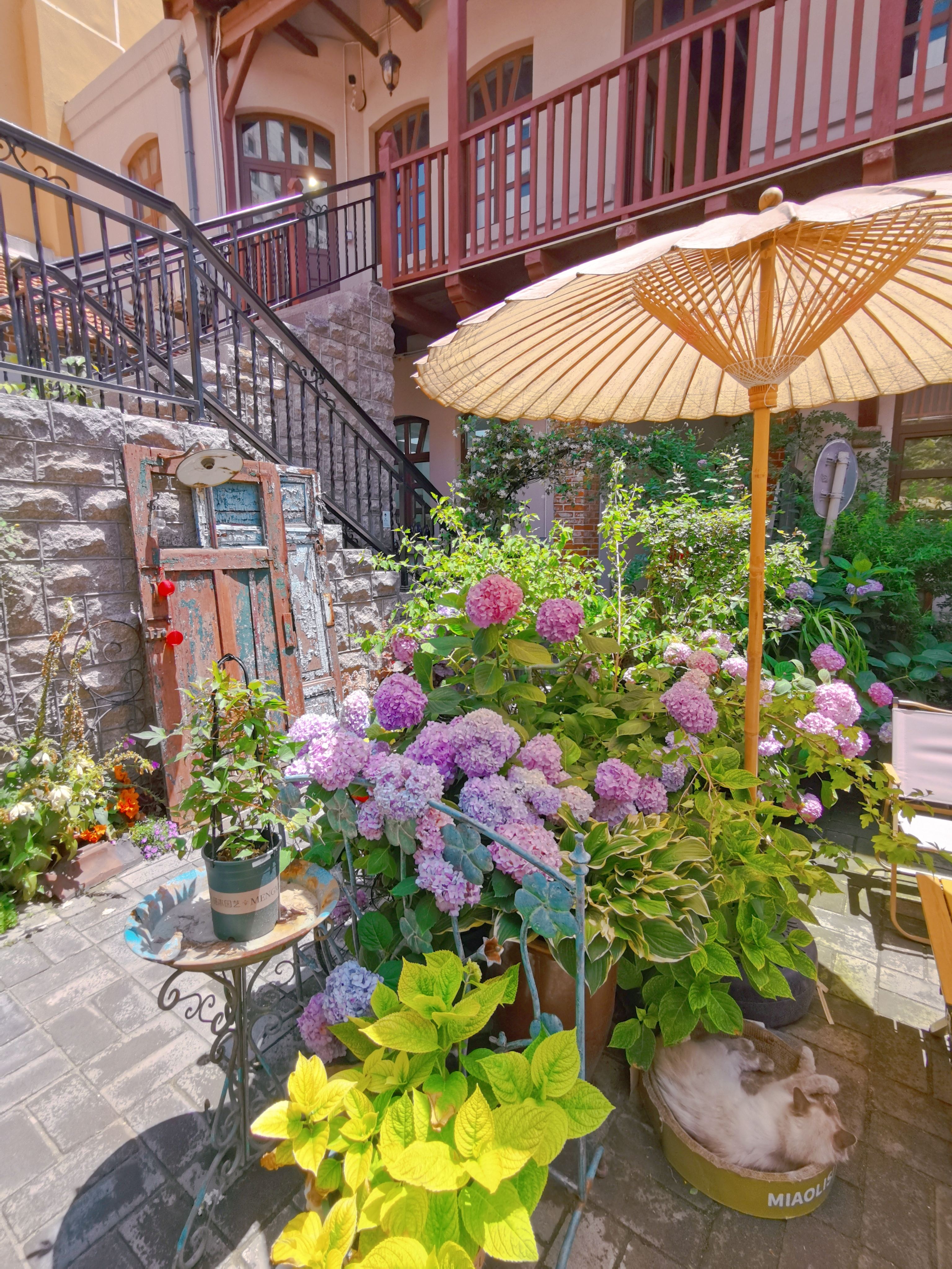 一进门拱形门就被暴击,谁懂啊!满眼盛开的绣球花肆意绽放,宛如一片绚烂的花海,小花园里的绿植生机勃勃,清新自然的气息扑面而来,瞬间将人治愈。
