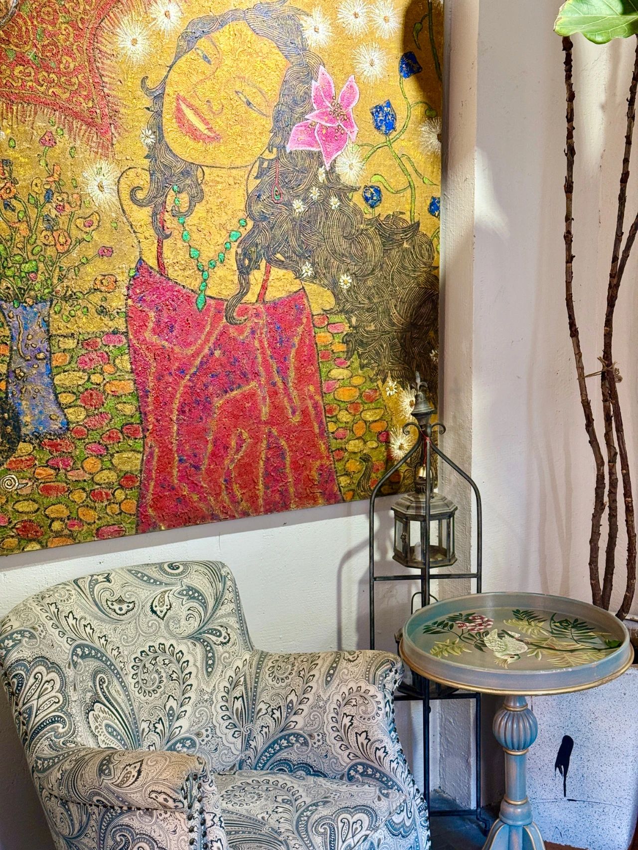 透过窗户向外望去,绿树与墙上的油画相互映衬,构成了一幅绝美的画面,随手一拍便是妥妥的ins大片模板。
