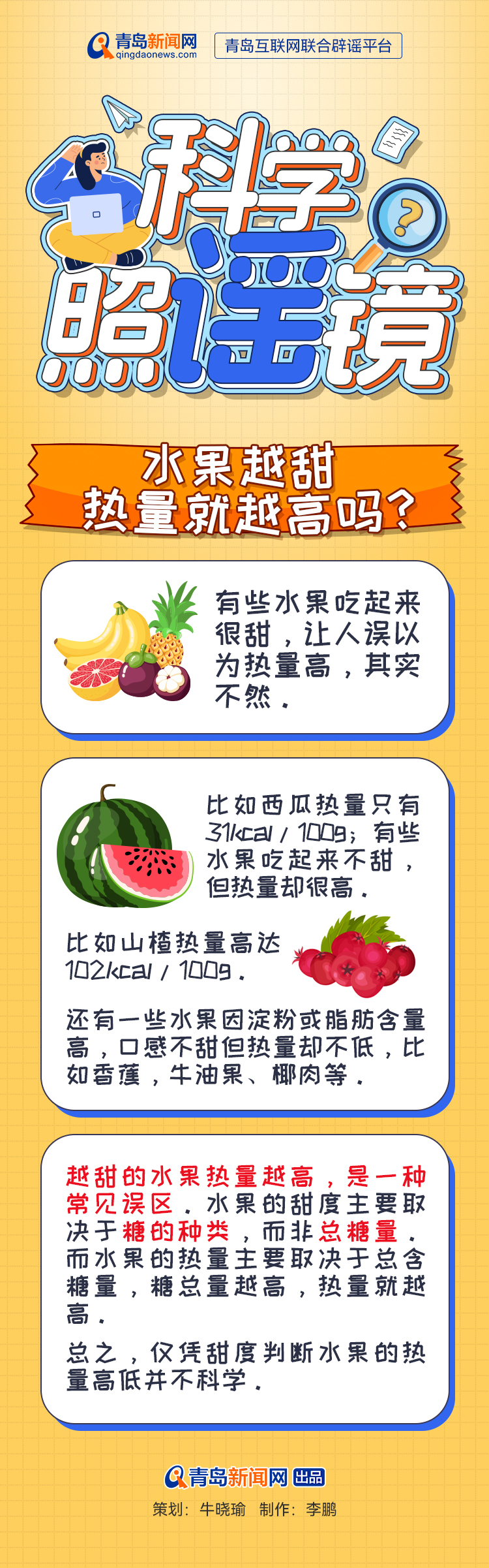 【科学照“谣”镜】水果越甜热量就越高吗?