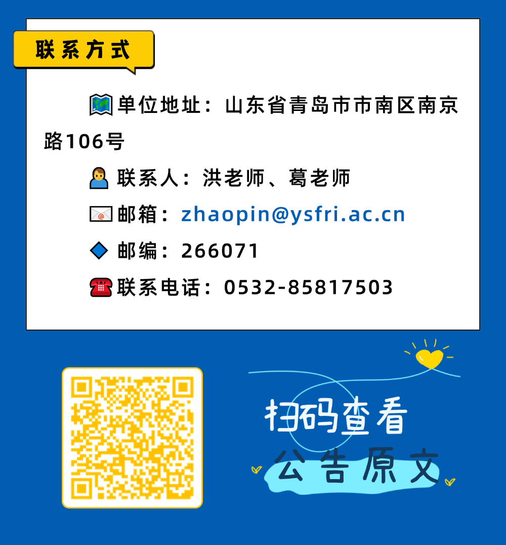 青岛有岗‼️中国水产科学研究院黄海水产研究所公开招聘