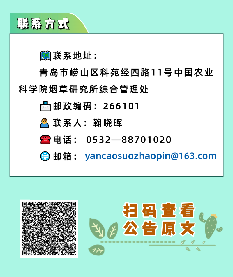青岛有岗‼️中国农业科学院烟草研究所招聘