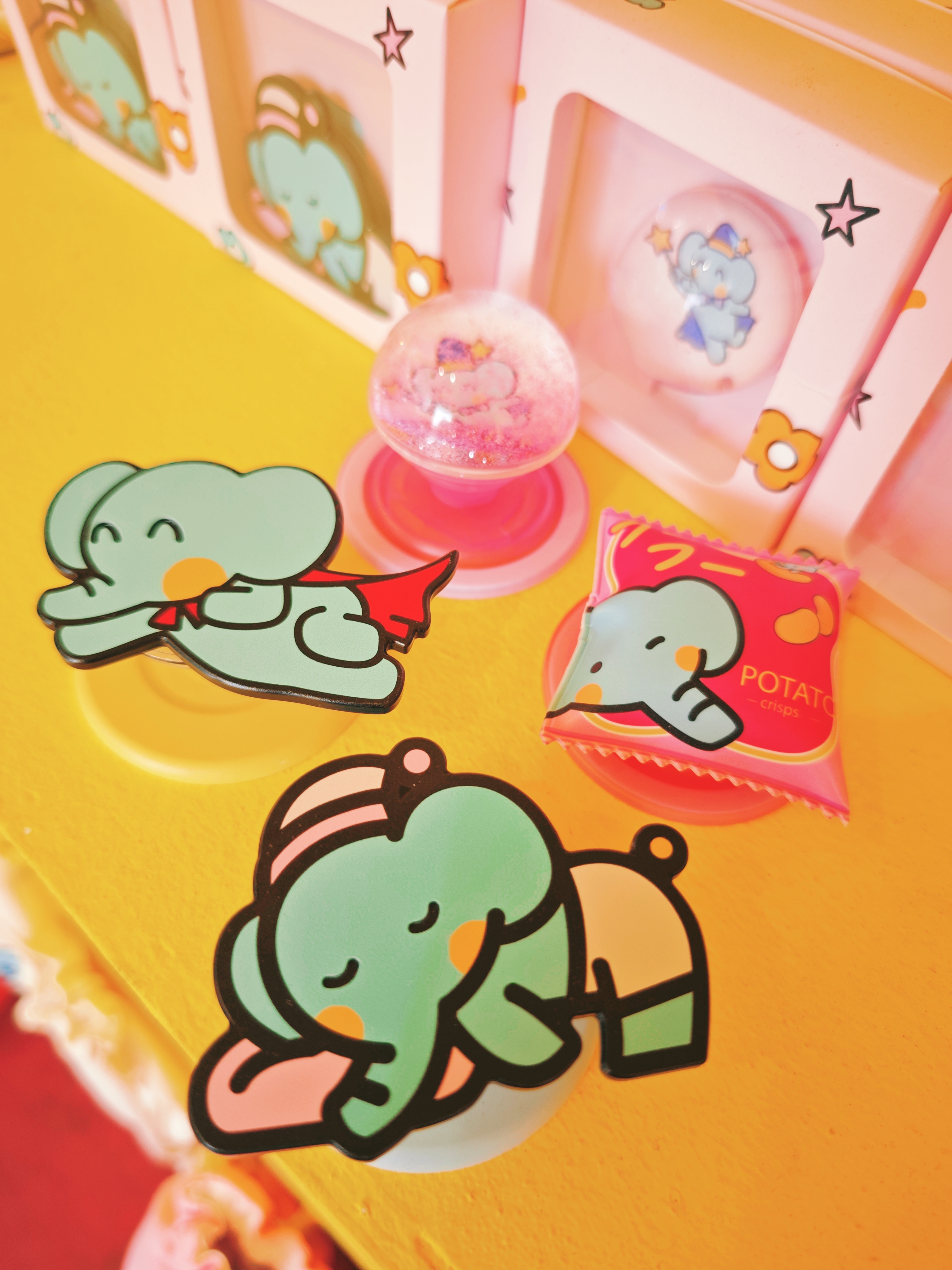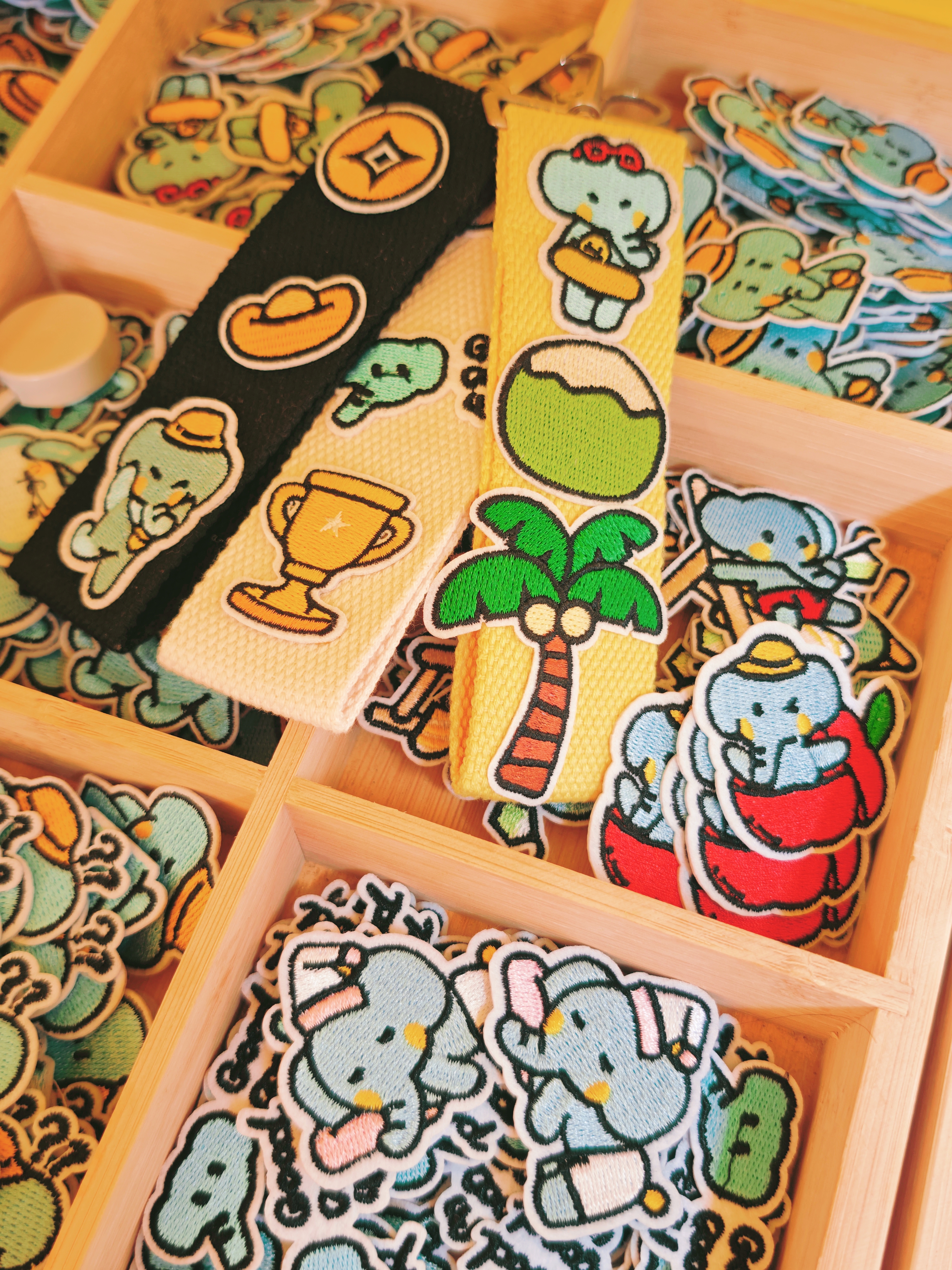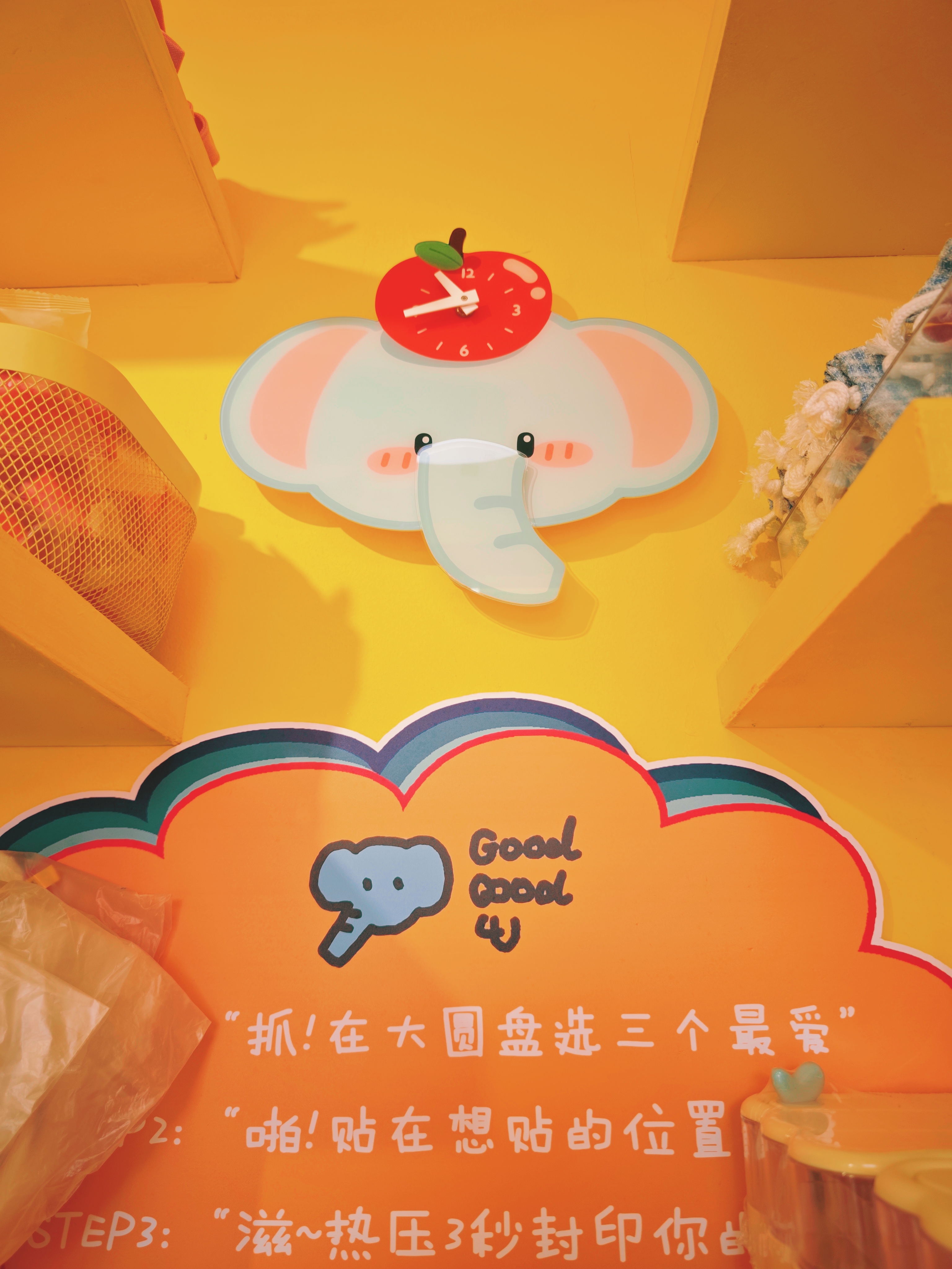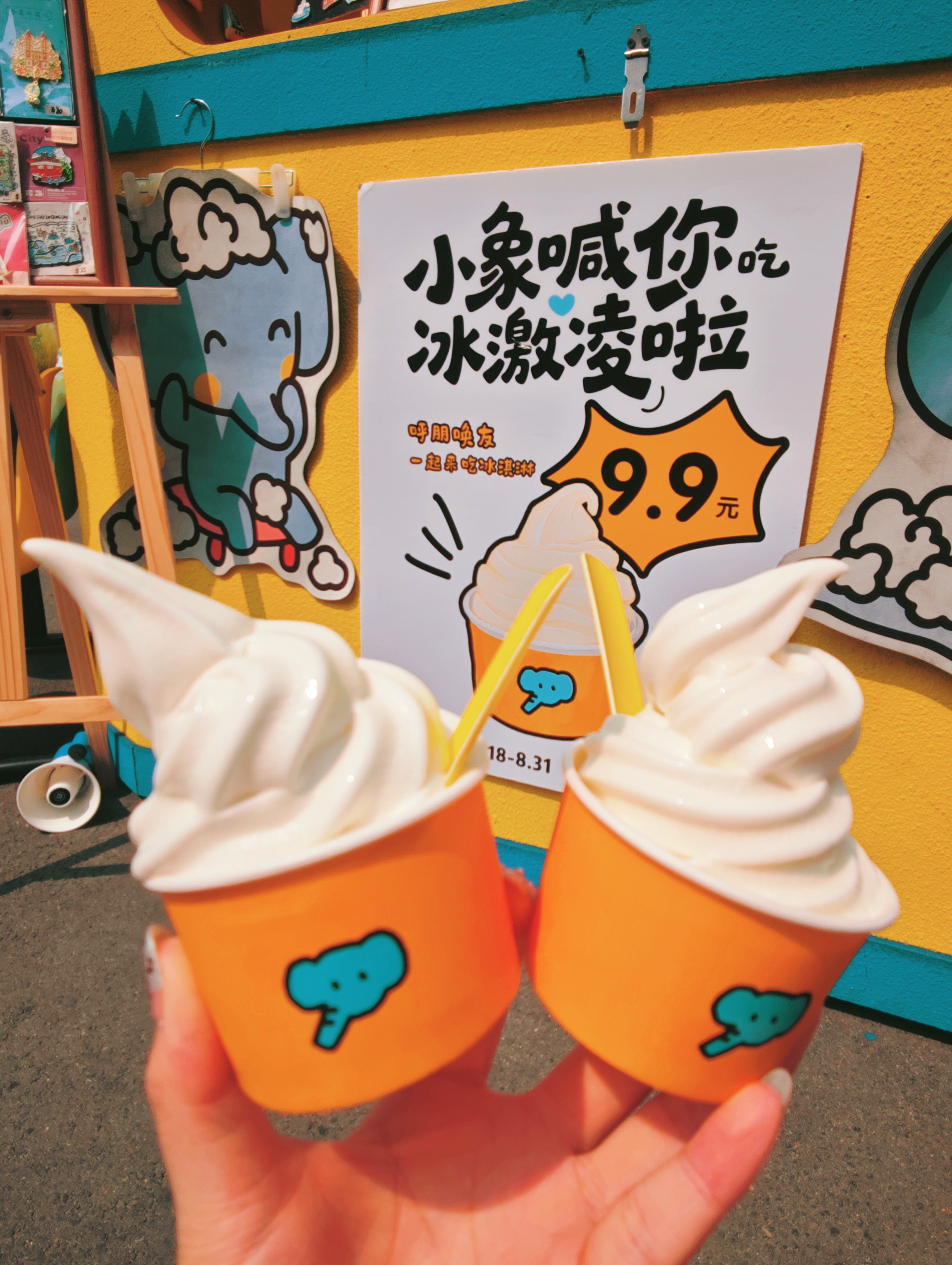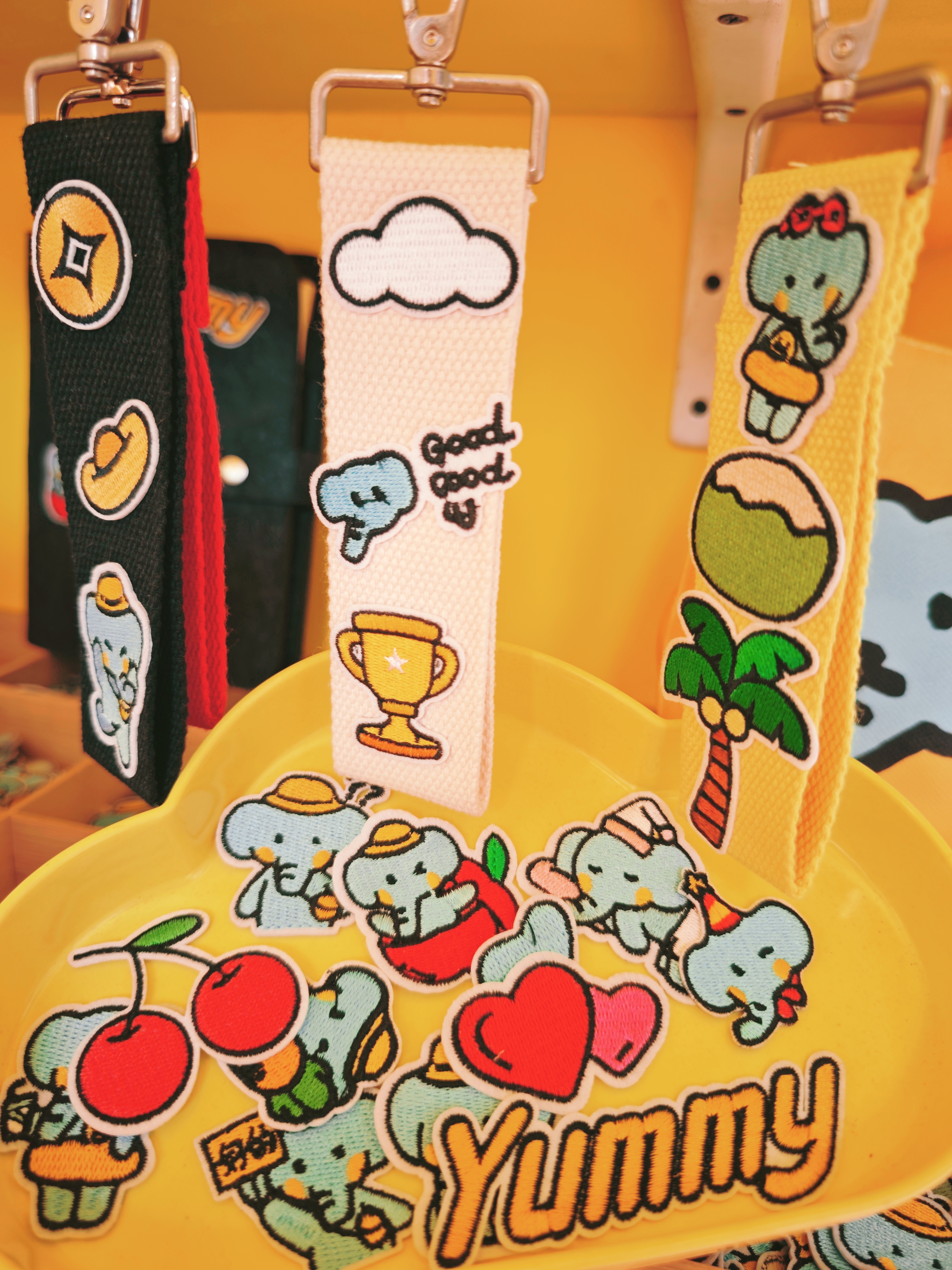 萌物暴击:限定周边墙裂安利,小象戒指、杯子、耳机壳、配饰、擦手巾、冰箱贴、小挂件等;9.9的牛乳冰淇淋奶fufu到心尖尖,性价比超高;DIY区最受欢迎,上百种补丁贴任选,熨烫出专属小象谷子。(偷偷说:本子+挂件+包包+衣服都可以!)