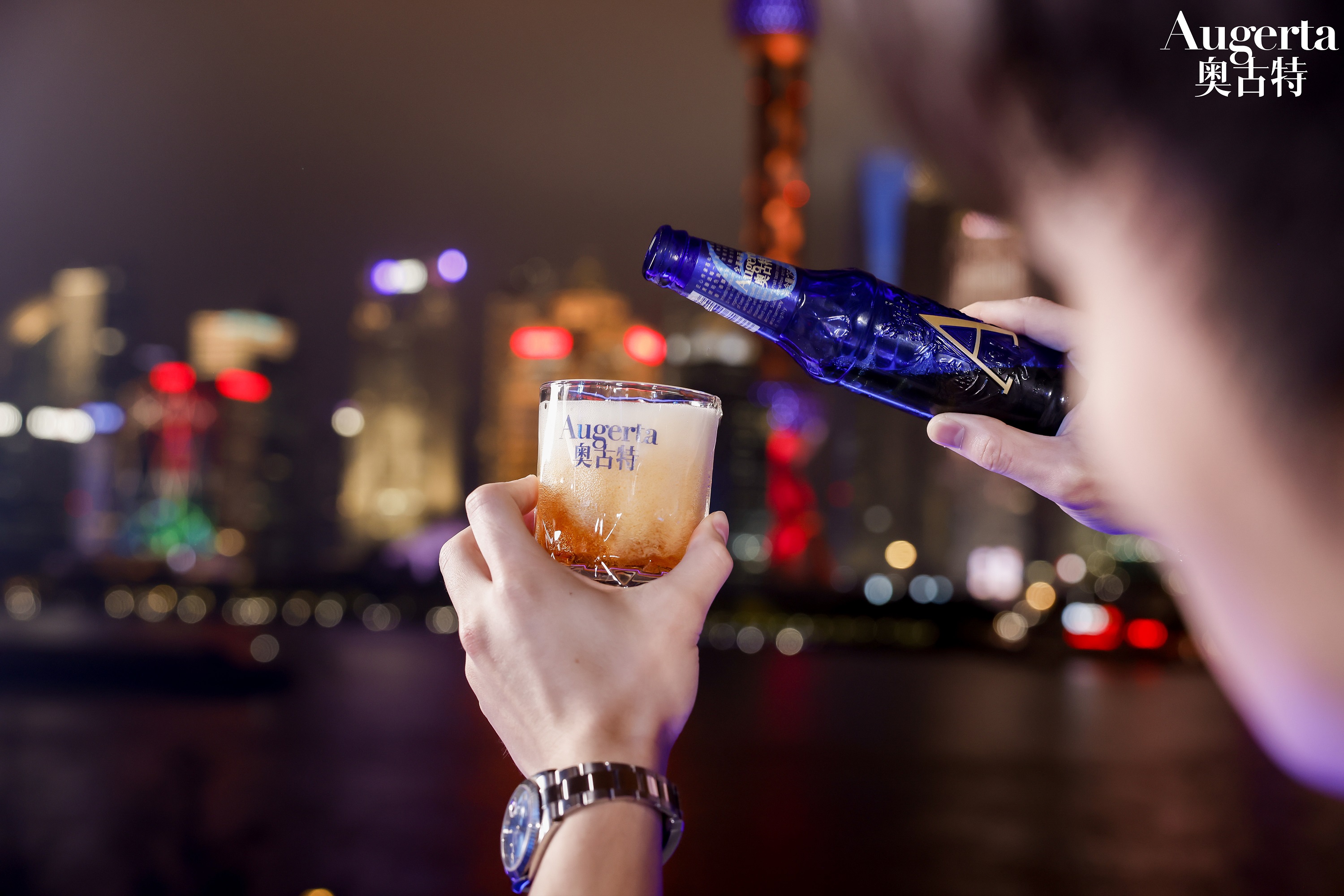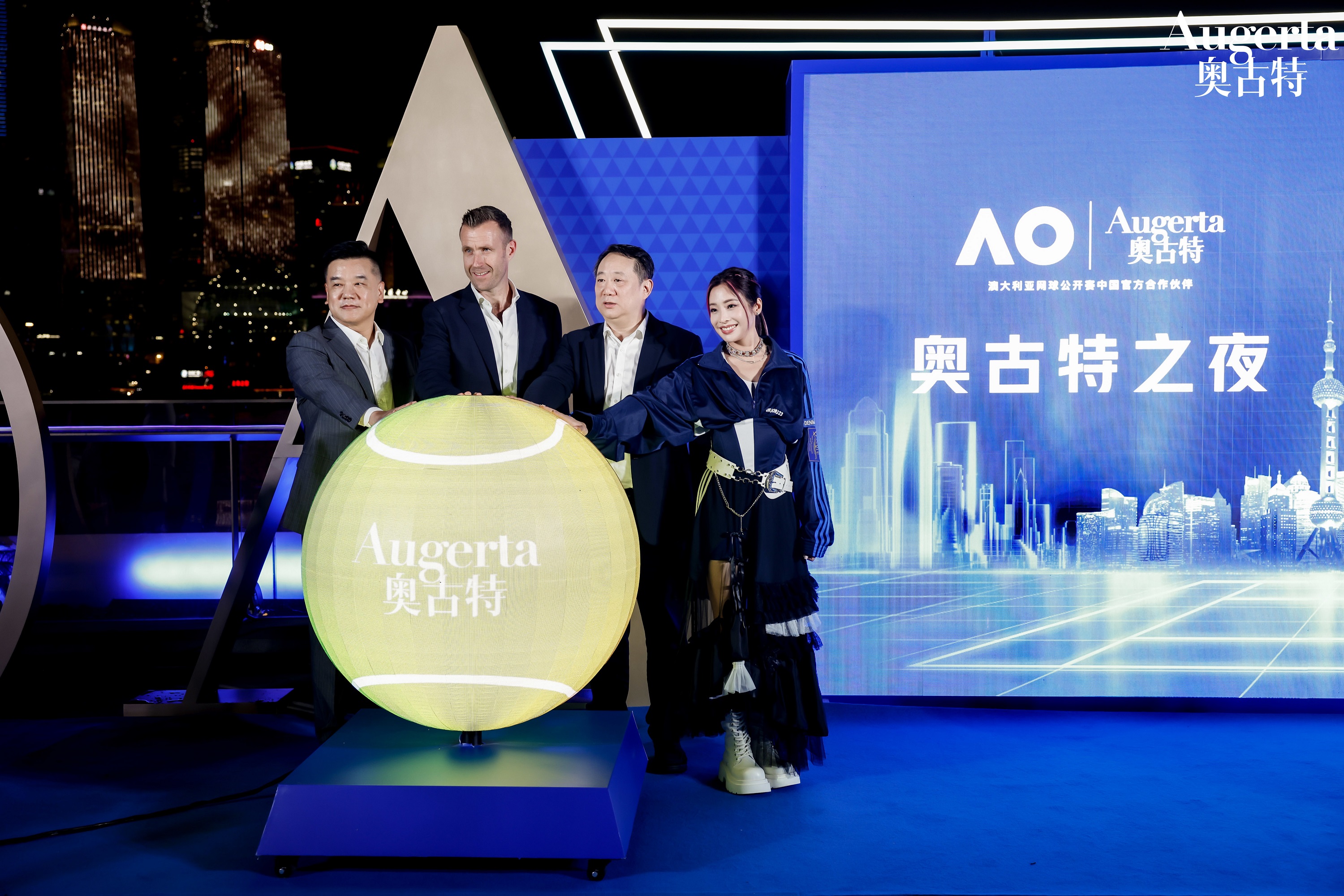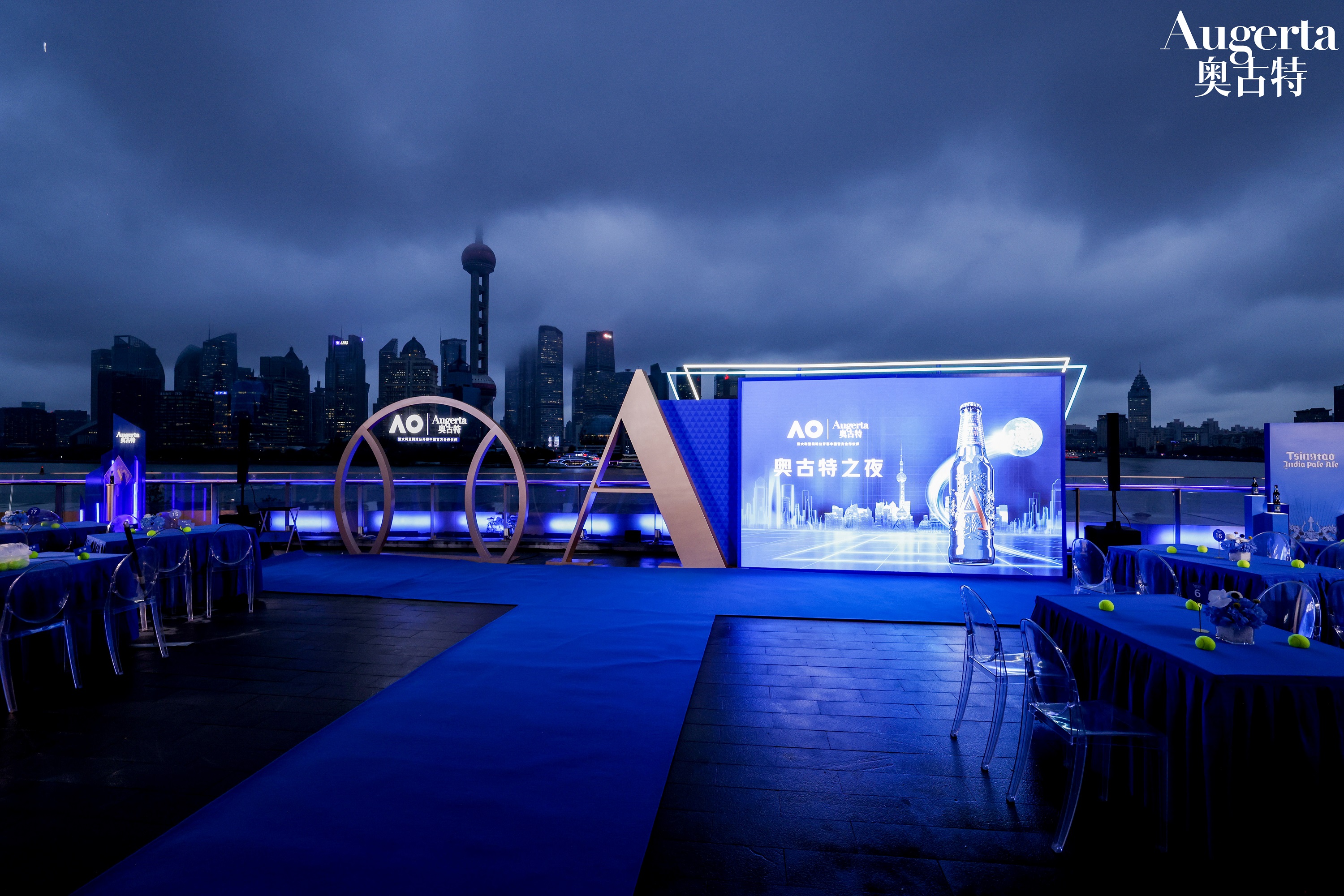 以天际为幕、浦江为景,奥古特于上海外滩呈现了一场格调精彩的网球和啤酒社交盛宴,活动由知名艺人Cindy袁咏琳担任主持,青岛啤酒与澳网代表共同表达了对双方合作的美好期待与愿景。