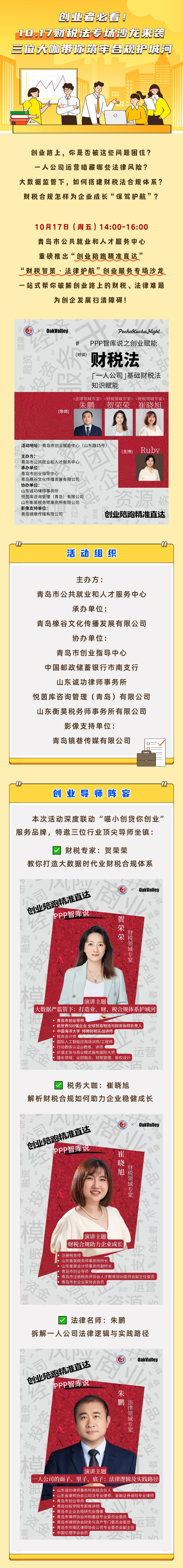 创业者必看!本周五财税法专场沙龙来袭,3位大咖带你筑牢合规护城河