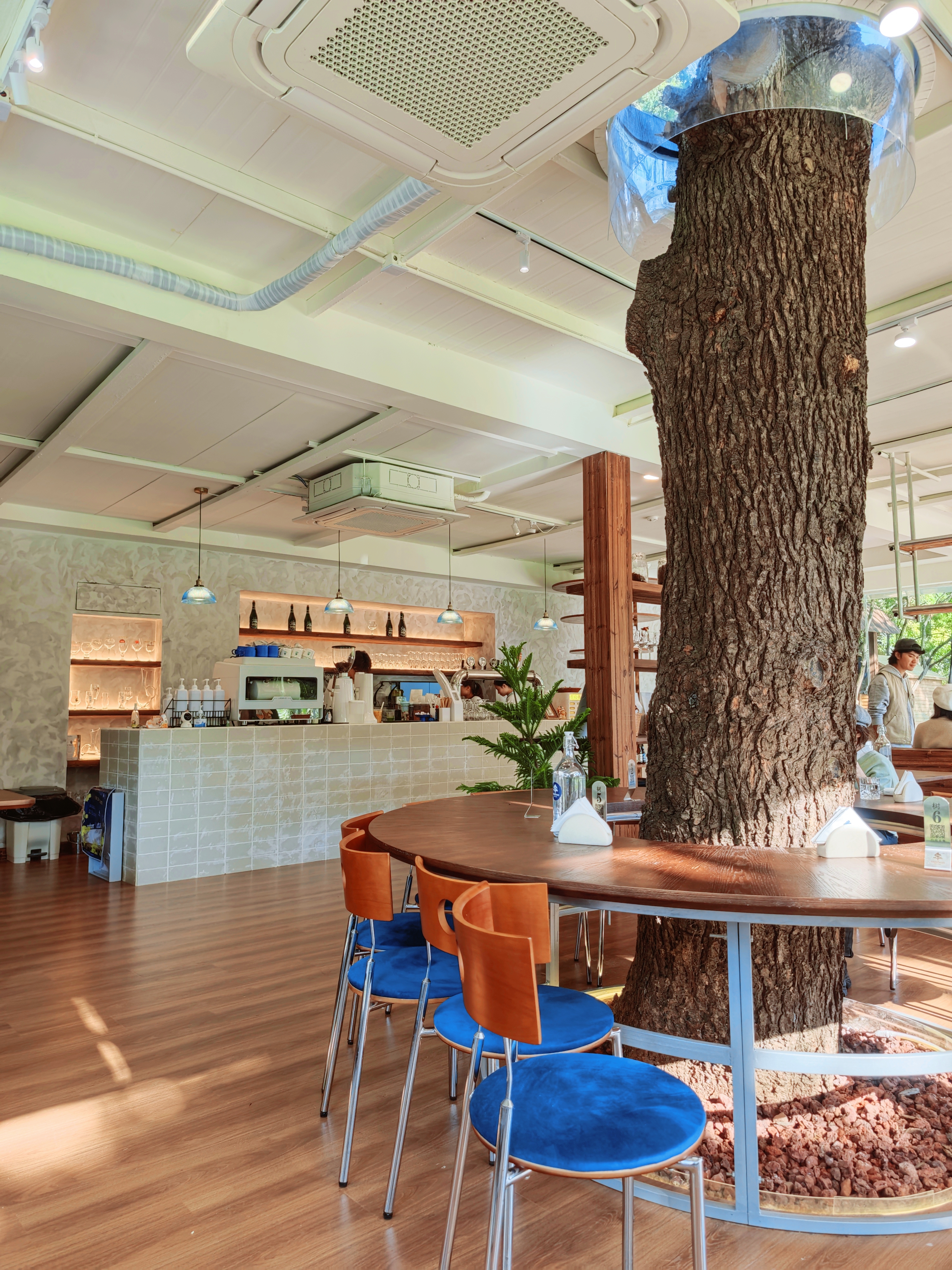 走进院内,仿佛踏入了一个被自然宠爱的世界,满屏的绿色瞬间让人开心起来。走进店内,中间那棵大树。更是成为整个空间的灵魂所在,有了一种在森林里野餐的奇妙感觉。