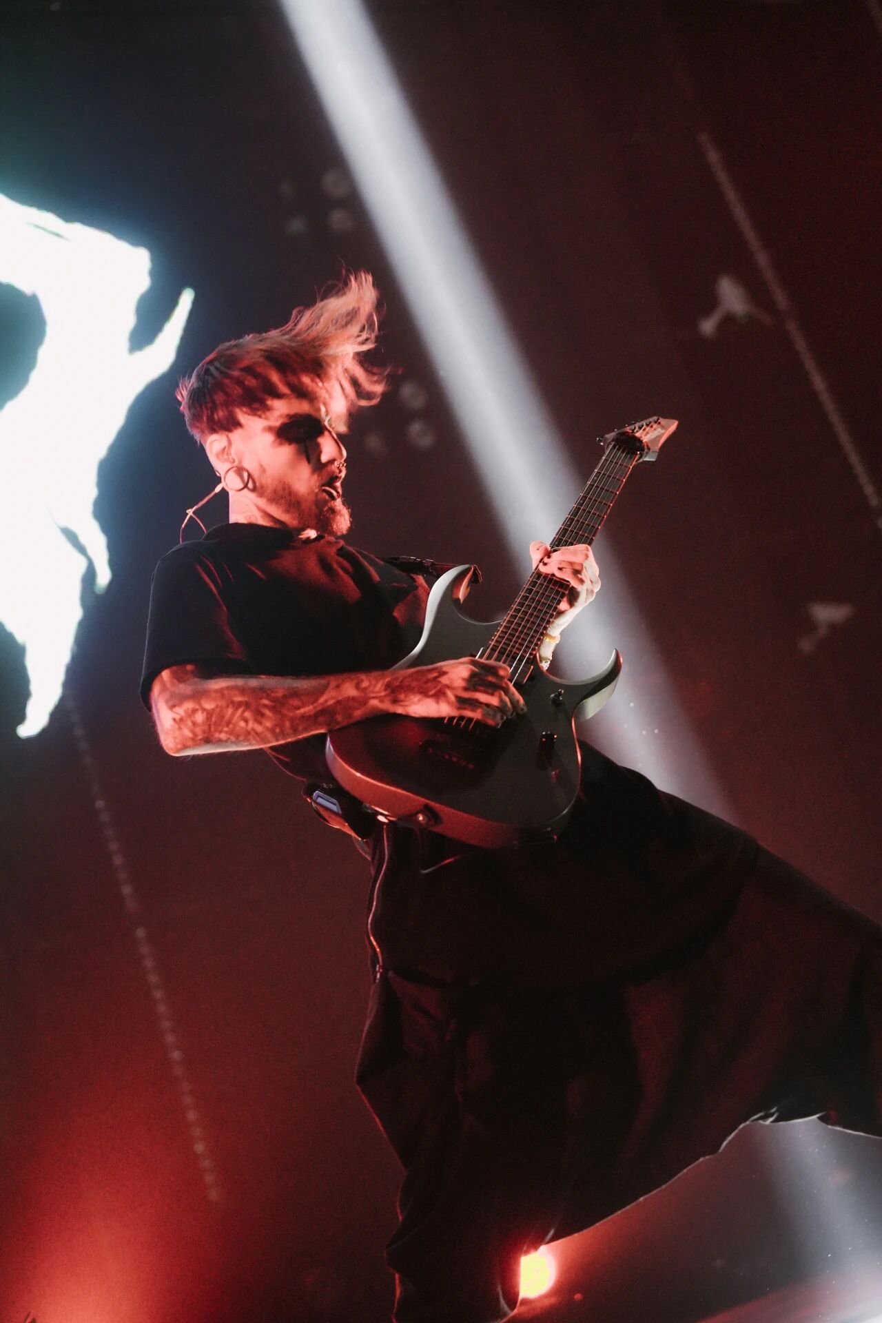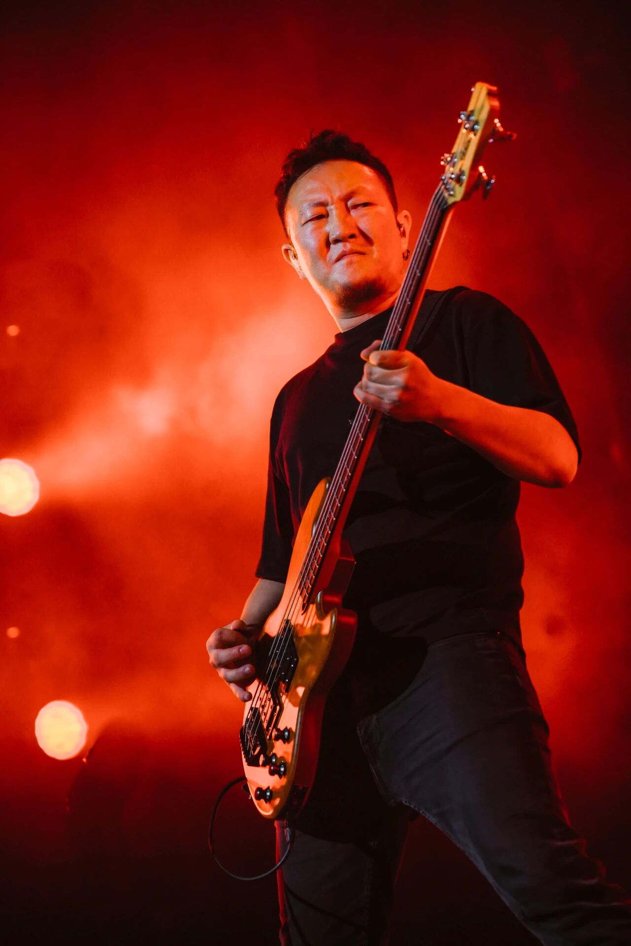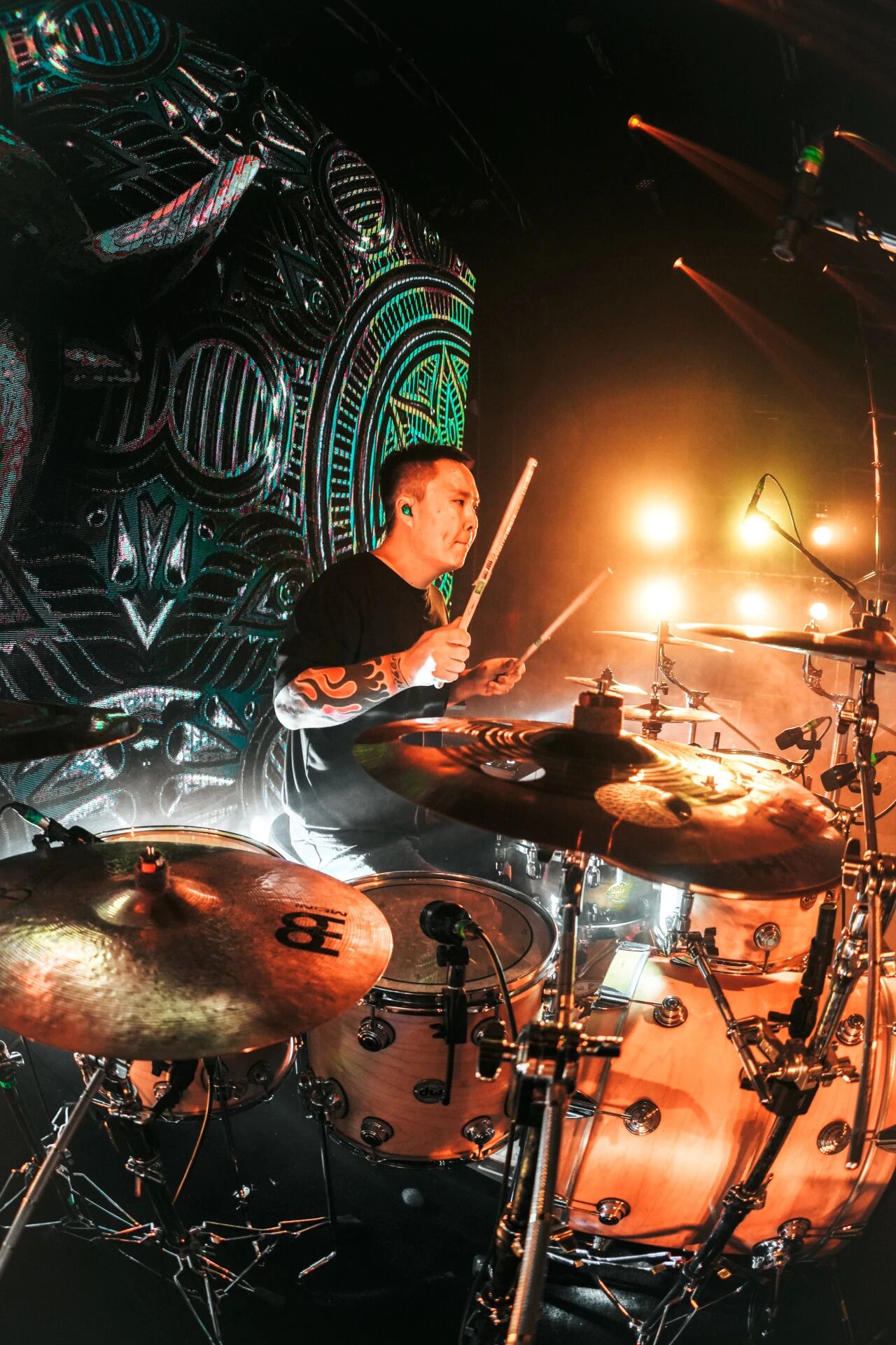 随后灯光骤起,金属共鸣即刻震颤全场,将草原的旷远与摇滚的炽烈无缝融合。主唱高亢嗓音裹挟呼麦的神秘力量穿透声场,每一个肢体动作都诉说着对音乐的赤诚,与强劲节奏共同构筑 「究极之境」 。