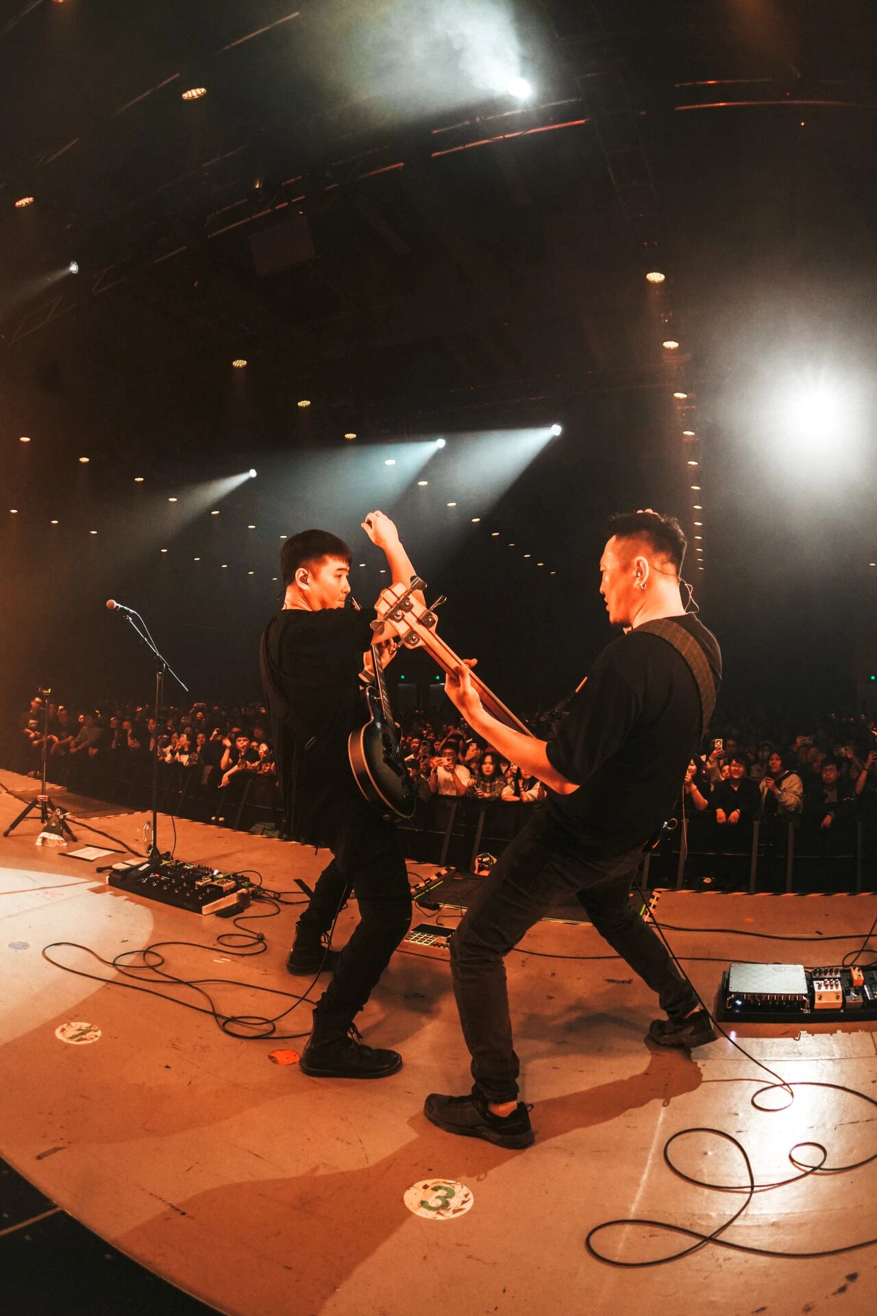 特邀嘉宾郭婷娜Tina Guo率乐队登场,以标志性的演奏张力撕开夜晚的氛围。琴弓游走间,古典韵律与摇滚风姿碰撞出惊艳火花,指尖下流淌的音符瞬间点燃全场热情,为整场演出铺垫了充满质感的开场。
