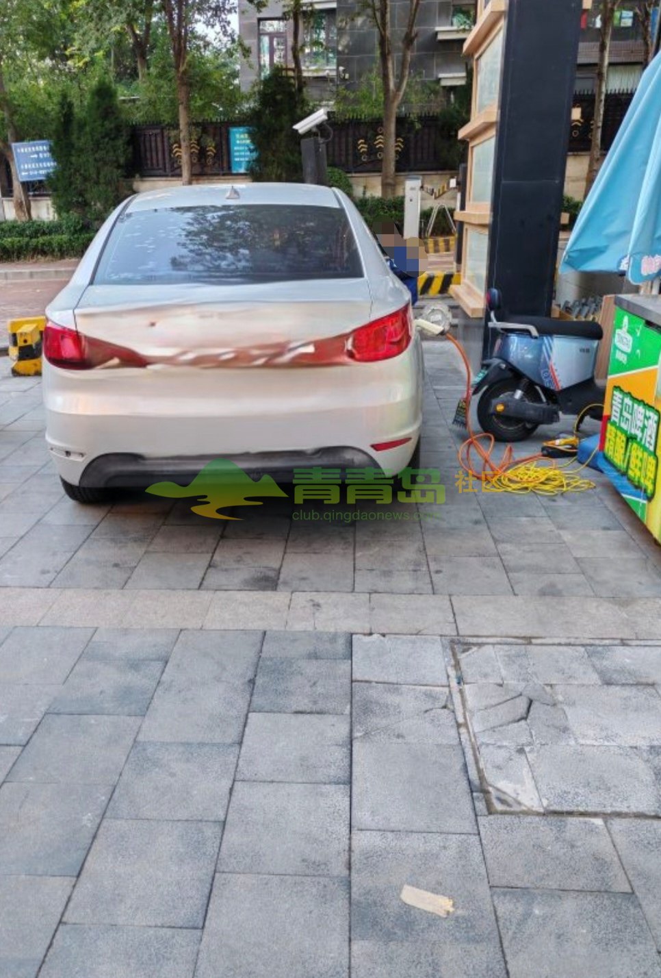 10月24日,有网友在青青岛论坛发文反映:市北区小港一路24号友客便利店门口,有新能源车在人行道上飞线充电,希望有关部门尽快处理。