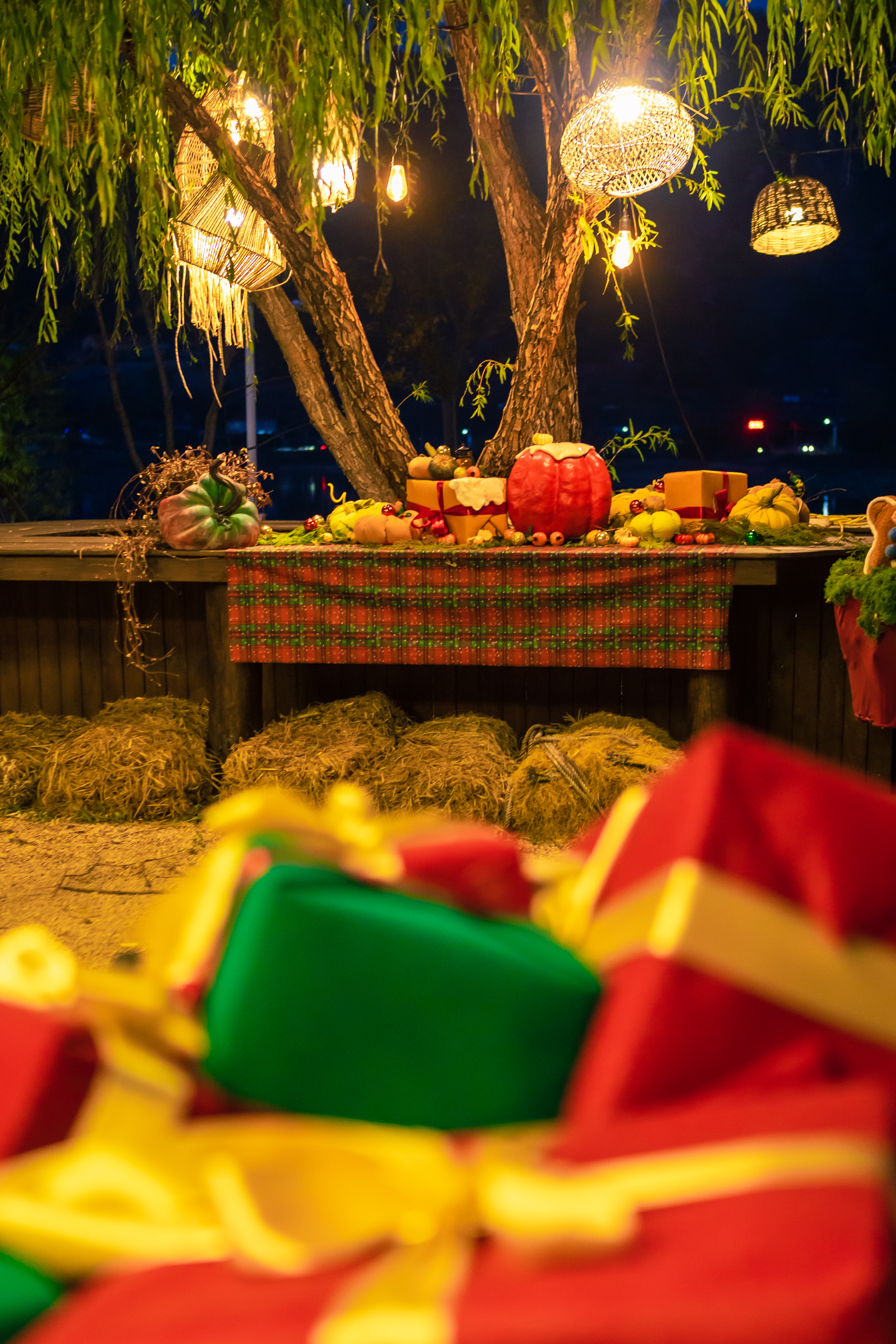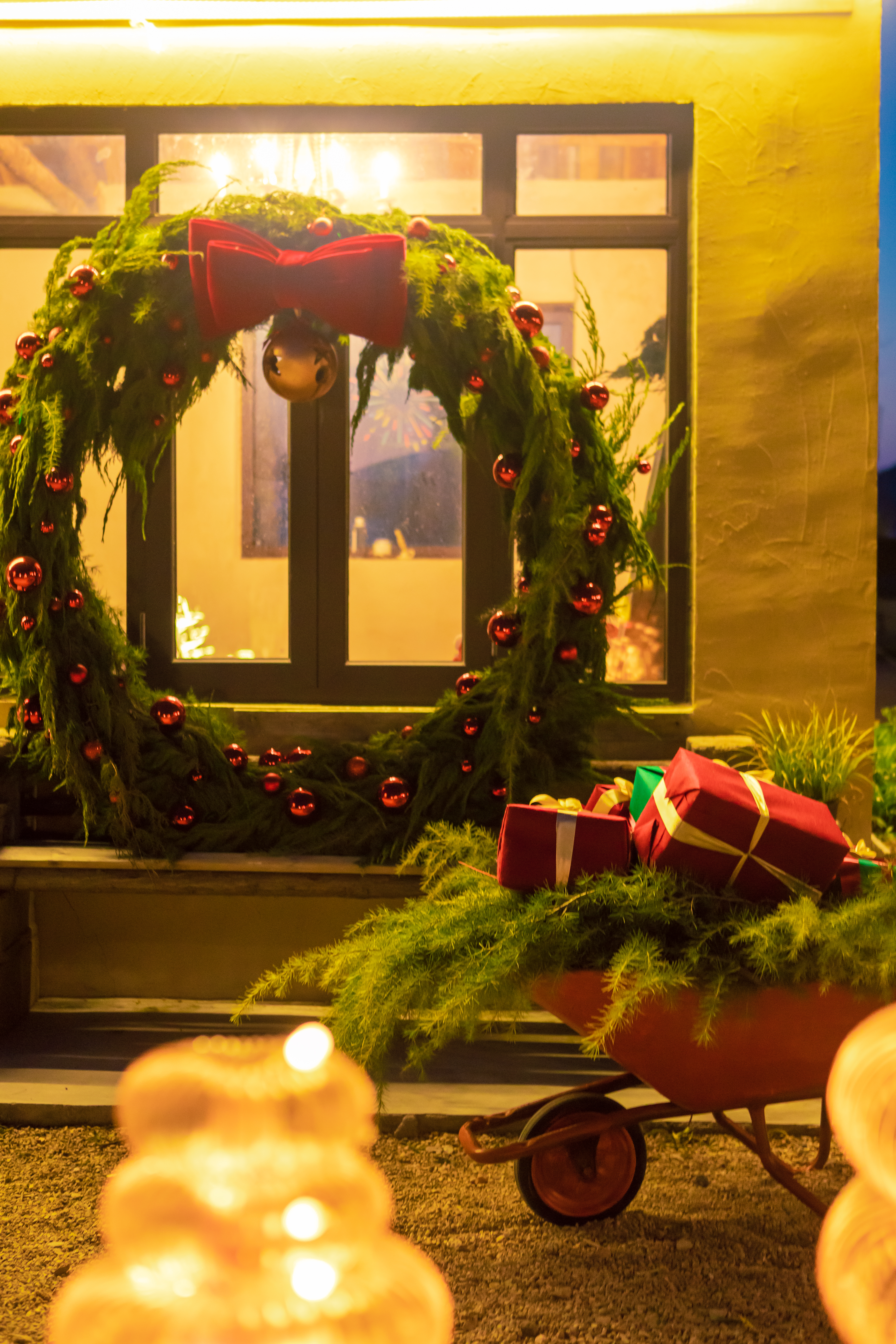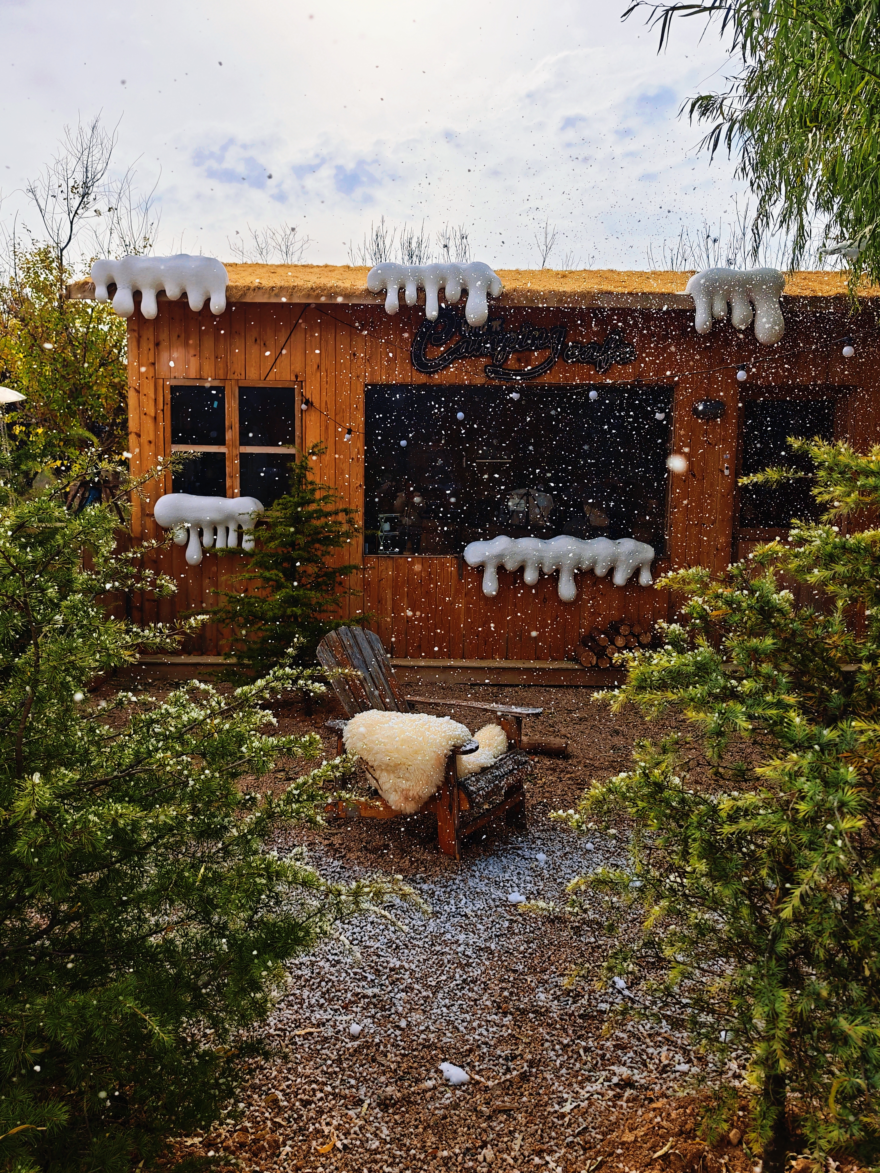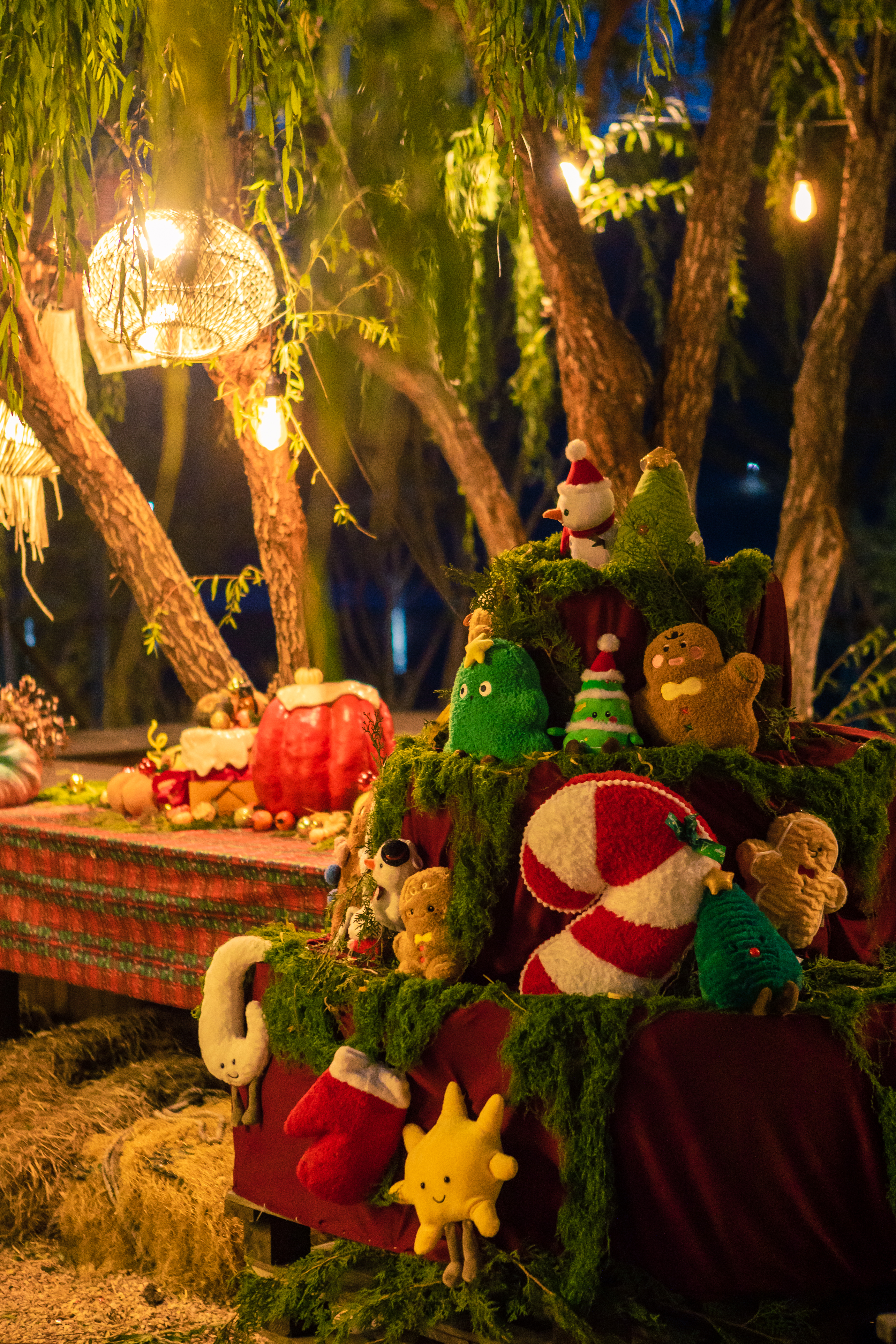 圣诞皮肤100%,巨型圣诞帽、圣诞老人等你来合影;藤编灯笼流星雨、挂满红果的圣诞树、雪人、“下雪”的浪漫场景,冬日童话现场。偶遇软fufu的营地猫猫,夜晚暖光一亮氛围感超级美。
