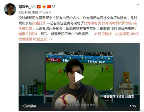 常有外地朋友羡慕青岛人的生活,美食、美景,还有隔三差五呼朋引伴的狂欢聚会。其实无需羡慕,这样的青岛“趣”生活你也可以轻松拥有。10月18日,海信电视、青岛啤酒、沃隆坚果三家青岛企业联手在京东“趣打开”平台组局“潮青在线趴”,全新的社交电视、领鲜的青岛啤酒、健康的每日坚果,让想要与亲友喝酒聊天一起看比赛的当代“养生”青年宅在家里也能呼朋引伴线上开趴!