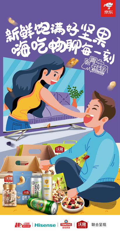 “从产品的角度来看,海信电视、沃隆坚果和青岛啤酒都具有一定的社交基因,为这次活动心智打下了很好的基础。”青岛啤酒电商市场经理李航说,“同时,我们聚焦当代青年的生活状态,希望通过这样的跨界合作,将青岛味十足的‘趣生活’分享给爱宅爱社交、能聊也能喝、要吃要健康的当代青年。”