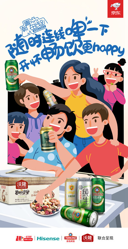 青岛新闻网10月22日讯(记者 黄晓)10月18日,海信电视、青岛啤酒、沃隆坚果三家青岛制造品牌在京东“趣打开”平台联合推出了“潮青在线趴”跨界营销活动,聚焦当代青年生活状态,打造了即使宅在家中也能通过电视连线亲友,一起K歌、看球、游戏的客厅社交场景,取得了极佳的效果。