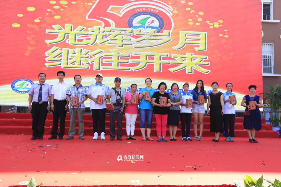 教师代表、山东省优秀教师王军艳老师,老校友代表、78届高中毕业生中共青岛市委党校副校长孙志强,分别从不同角度,抒发表达了对学校的深厚感情和美好祝愿。