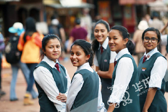 尼泊尔的年轻人载歌载舞欢迎远方的客人。 特派记者 李文科 摄