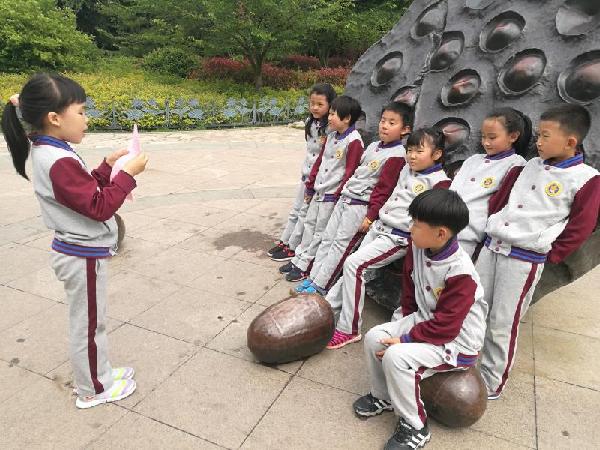 18日上午,青岛嘉峪关学校的同学们分成6个小组,来到中山公园。有的小朋友穿着整齐划一的校服,来到孙文莲池,了解它的历史和典故,以及孙文伟大的革命故事。有的小朋友穿着复古的中山装和五四装,来到中山公园喷泉前,通过对青岛第一个喷泉的了解,找寻喷泉里的故事和科技,文化和历史。小朋友们童声齐鸣,吸引了路人的注目,少年说丝丝入耳,朗读声贯穿于中山公园。