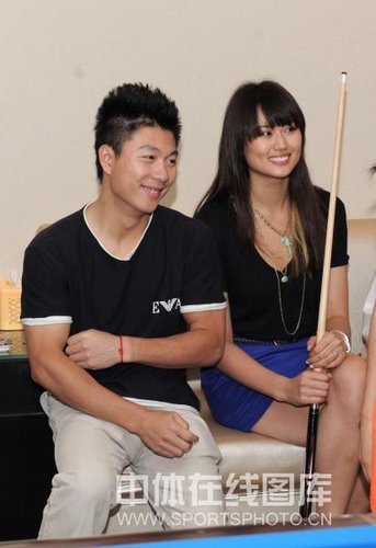 李小鹏与女友李安琪 潘晓婷面前,刘璇绝对是乖学生。昨天出现在活动现场的她没有接受采访,但可以看得出,昨天她玩得十分开心。虽然踏入的并非自己熟悉的体操赛场,但拿起台球杆的她,也秀出了自己的美丽。 短裙加高跟鞋,出杆时两腿竟然交叉,刘璇的腔调一看就属于业余中的业余。“三万奖金归谁了?”因行程安排,刘璇未能到中国公开赛现场给潘晓婷加油。不过,她依然非常关心最终冠军奖金的归属。 “哪个是七号球,七号球在哪?”这是刘璇对九球的最初认识,在潘晓婷的指导下,刘璇还是打进几个球。 “晓婷老师教得就是好。”刘璇后来边打边说。 学得高兴,玩得开心,但刘璇昨天没有接受任何采访。现在的她,已经成为“话题人物”。很多想法,她只通过自己的博客来表达:“运动员退役后要转换跑道,这不是一件容易的事。前不久在香港和杨威、黄旭、小鹏这些老哥们聊起退役的事,才发现,不知不觉自己已经退役快九年了。从读书到现在工作,甘苦自知,人生大致如此。承受属于自己的重,看淡飞短流长的轻。” |